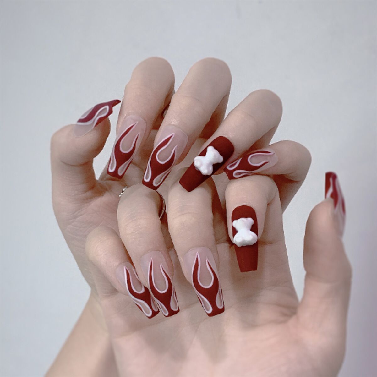 24pcs/Set Punk Fire Pattern Fake Nails Short design Nail Accessories Ballerina Nail Art Tips Full Cover Press on Nails-Nail Inspo