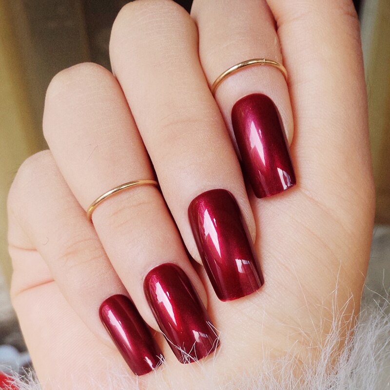 24pcs/set Vampire Wine Red Fake Nails Long Square Plastic Solid Full Press on Nail Tips Free With Nail Glue-Nail Inspo