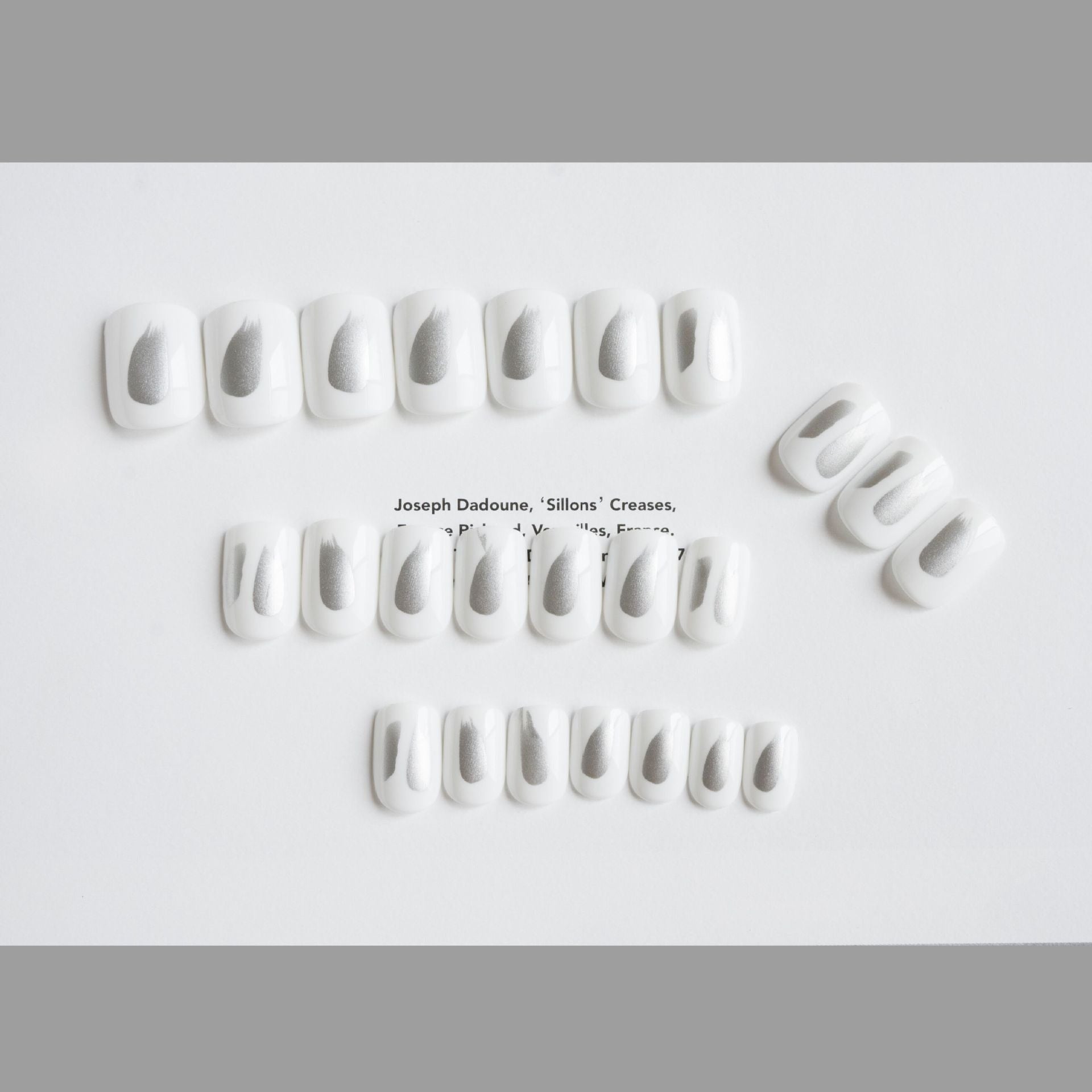 24pcs/Set White Silver Art Graffiti  Fake Nails Full Cover Fake Nails Glue DIY Manicure Nail Art Tools-Nail Inspo