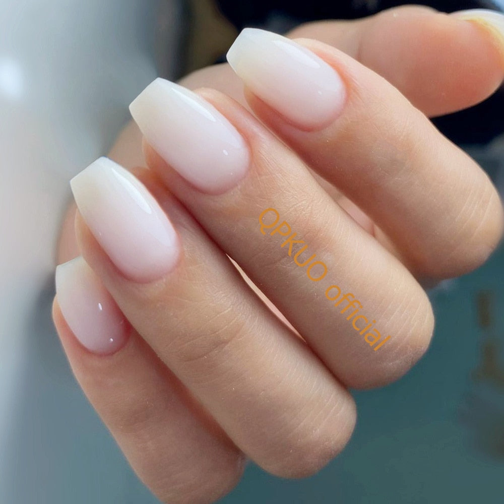 24Pcs Shiny Artificial Fake Nails With Jelly Glue Off White Short Ballerina Coffin False Nails Press On Finger Tip Manicure Tool-Nail Inspo