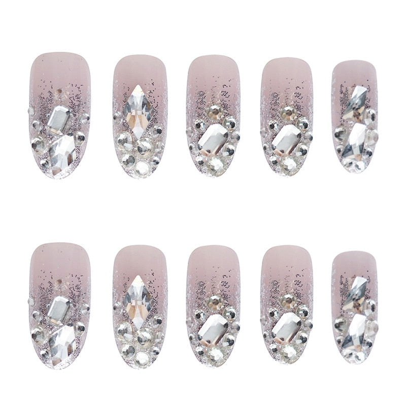 24PCS Shiny Flitter Nail Patch Glue Type Removable Long Paragraph Fashion Manicure Save Time False Nail Patch TI-Nail Inspo