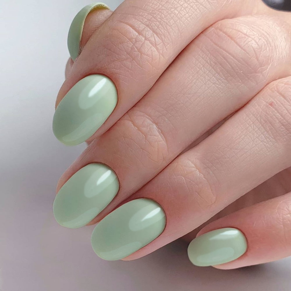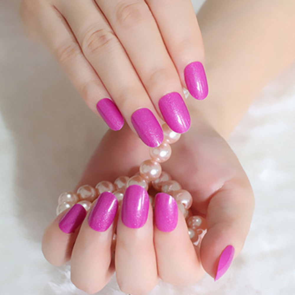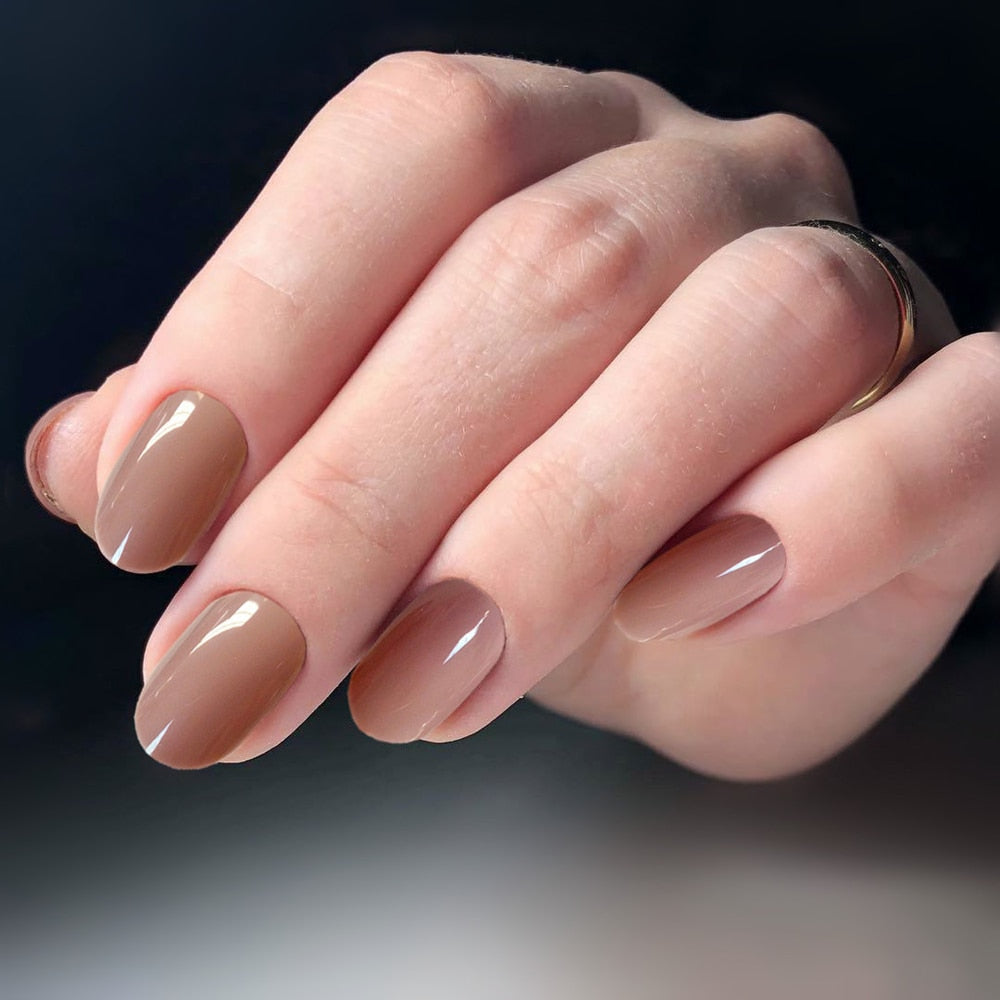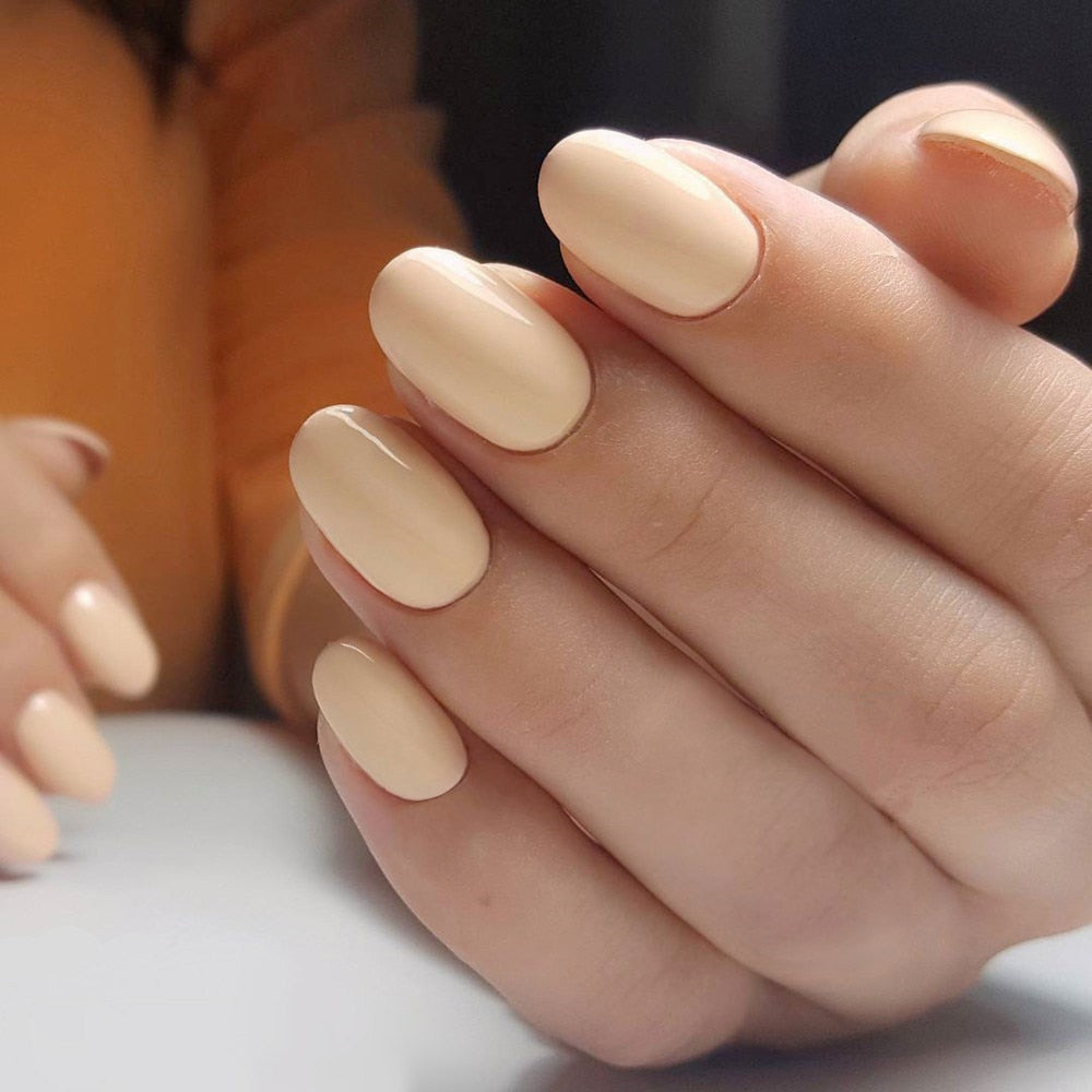 24Pcs Shiny Nude Oval Fake Nails For Children Natural Artificial Press On False Nails DIY Finger Tip Manicure Tools-Nail Inspo