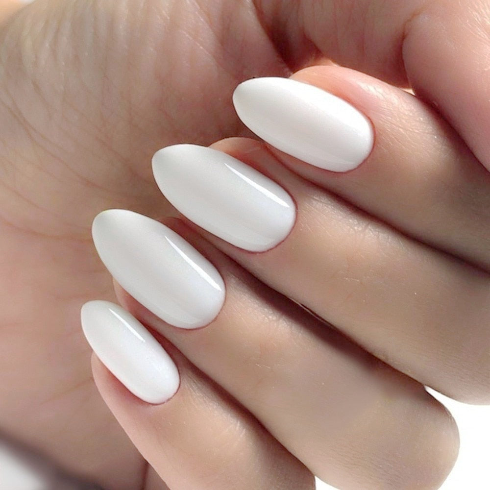 24Pcs Shiny White Short Stiletto False Nails With Jelly Glue DIY Artificial Fake Nails Art Tips Press On Manicure Tools-Nail Inspo