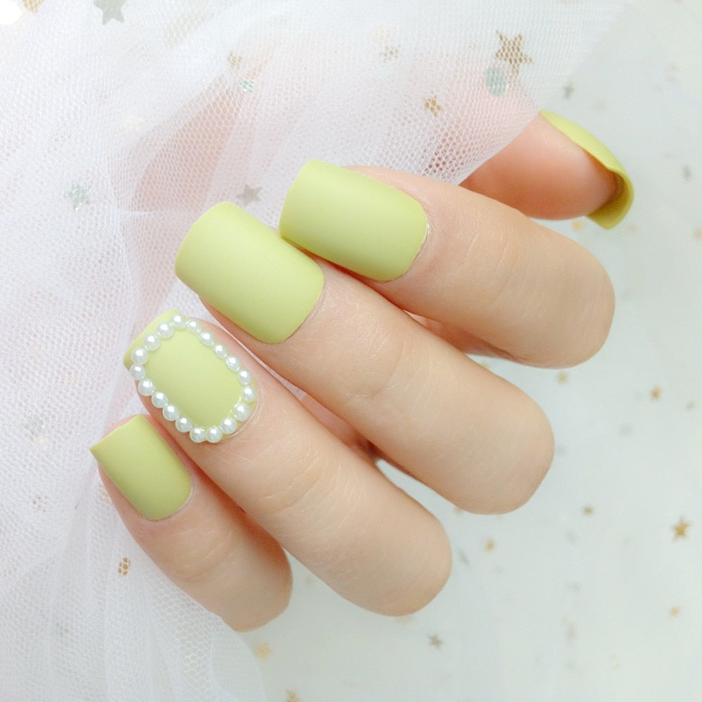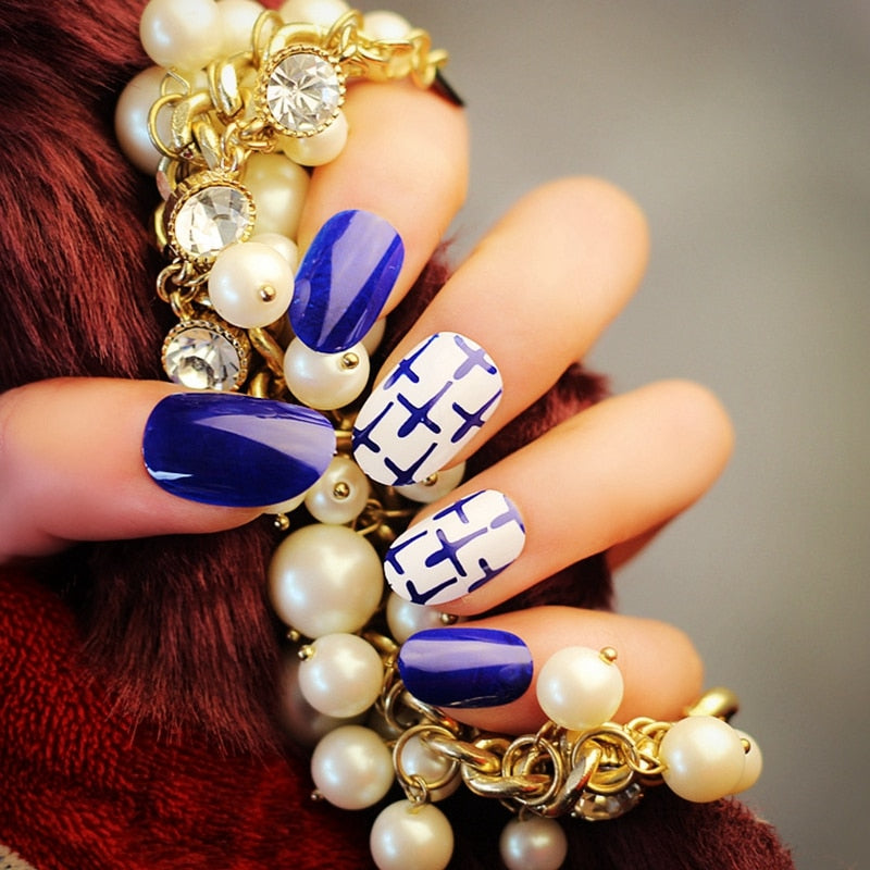 24Pcs Short Square Artificial Fake Nails DIY Press On False Nails With Design Acrylic Full Cover Tips Manicure Tool-Nail Inspo