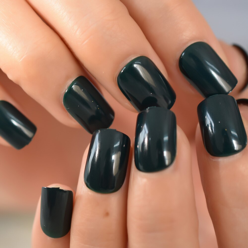 24PCS Short Squoval Dark Pure Color Nail Set Art Full Cover Fack Nails Charming Gels Nail Wholesale-Nail Inspo