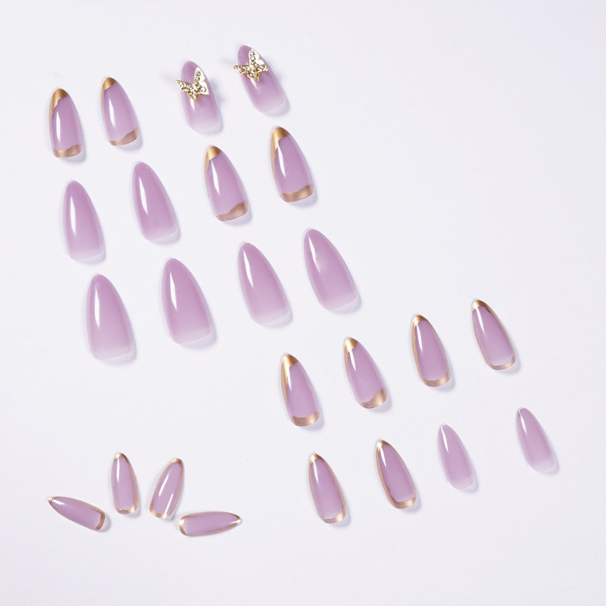 24pcs Smoke Purple Pnompenh Butterfly Fake Nails Full cover Fake Nails Glue DIY Manicure Nail Art Tools-Nail Inspo