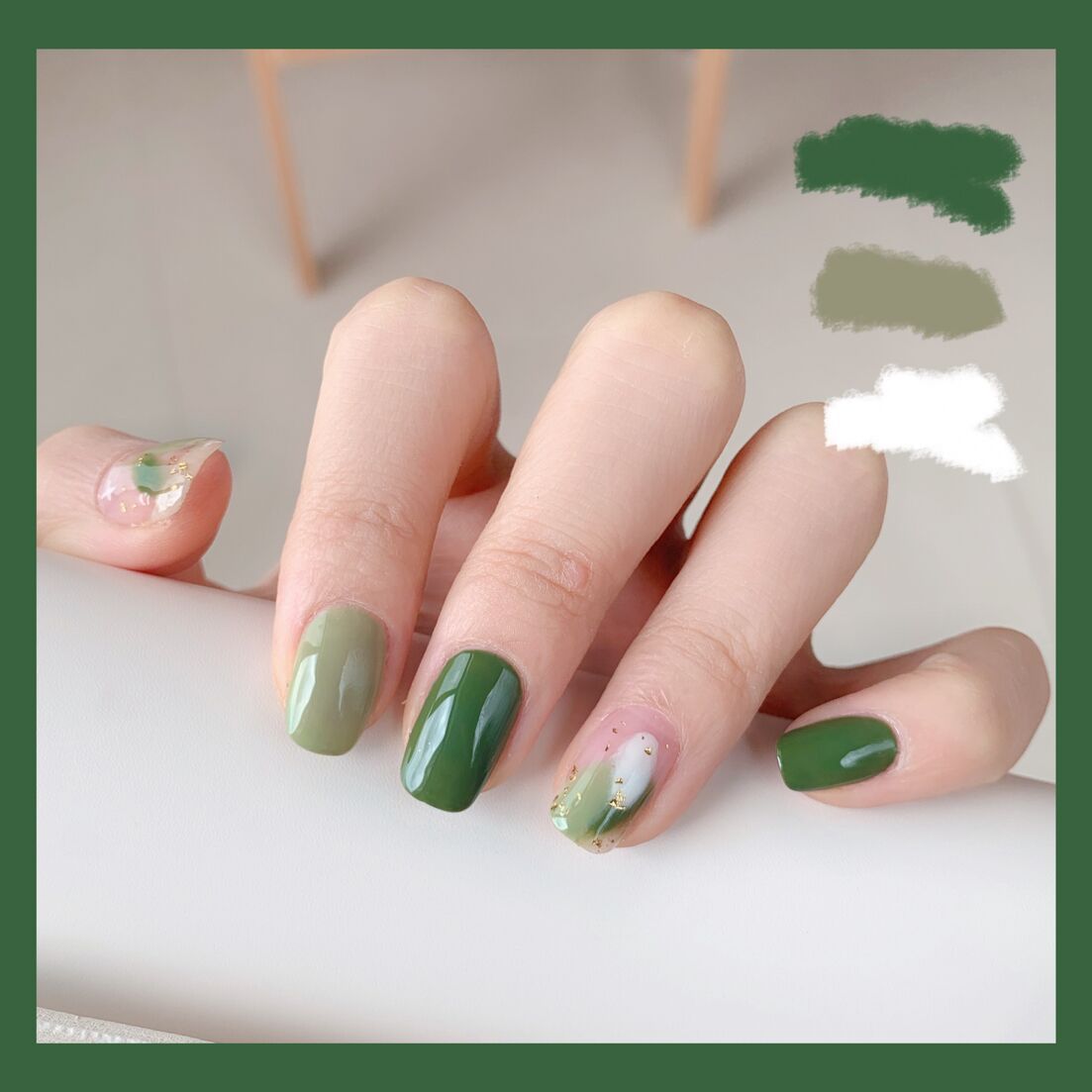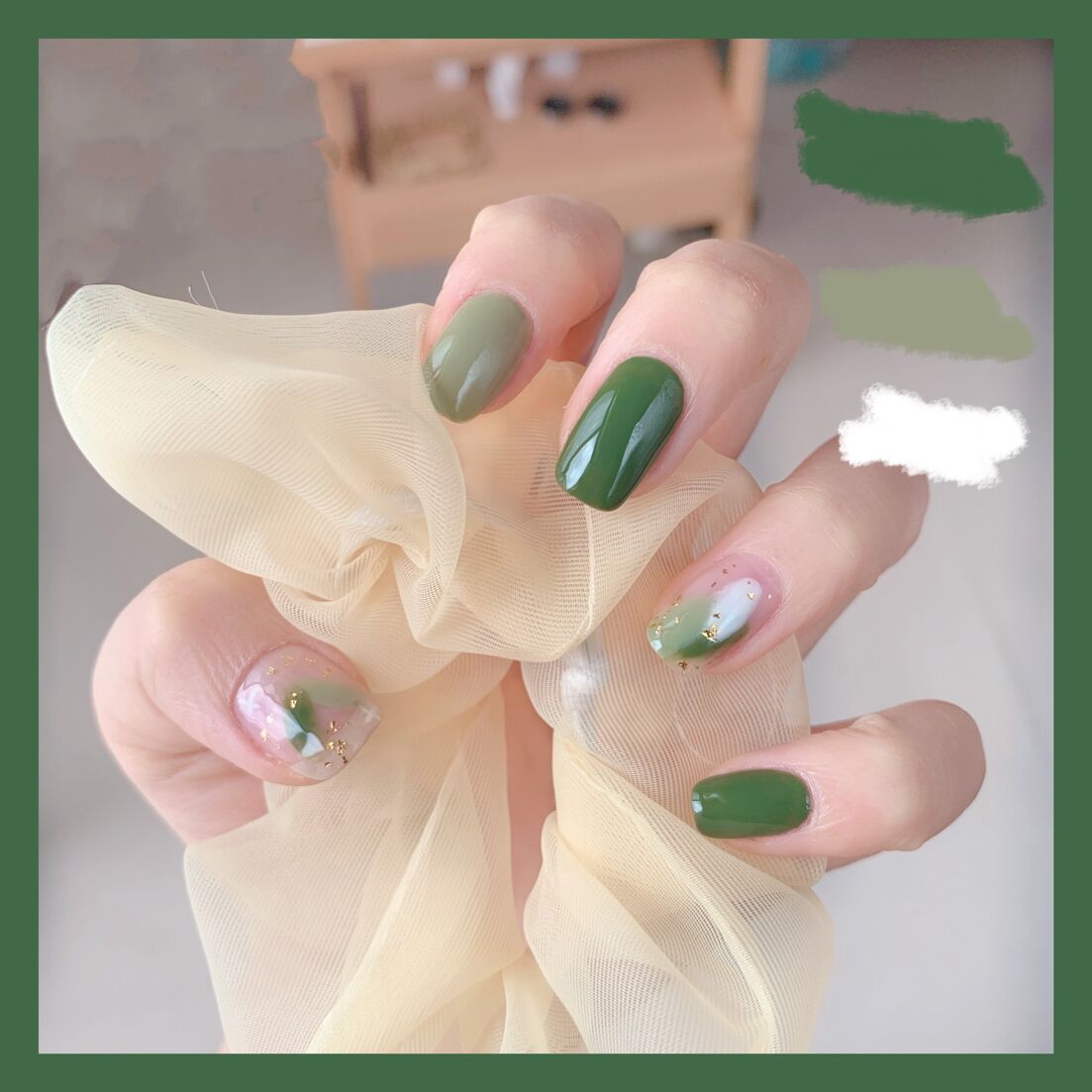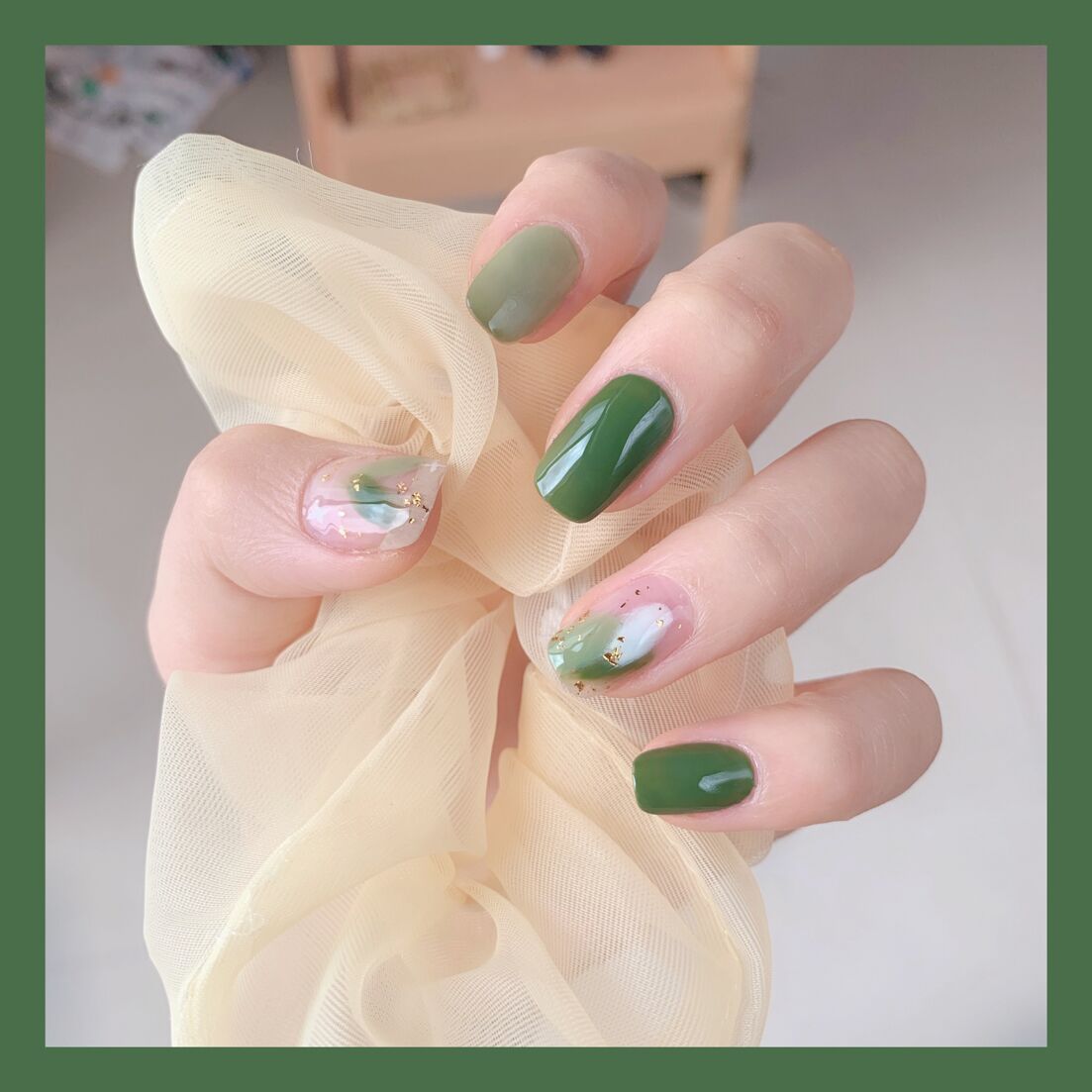 24pcs Summer Green Fake Nails Full Cover Fake Nails Glue DIY Manicure Nail Art Tools-Nail Inspo