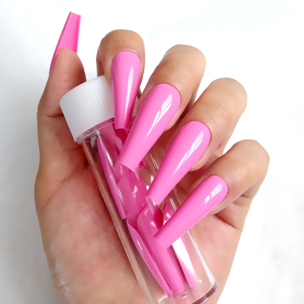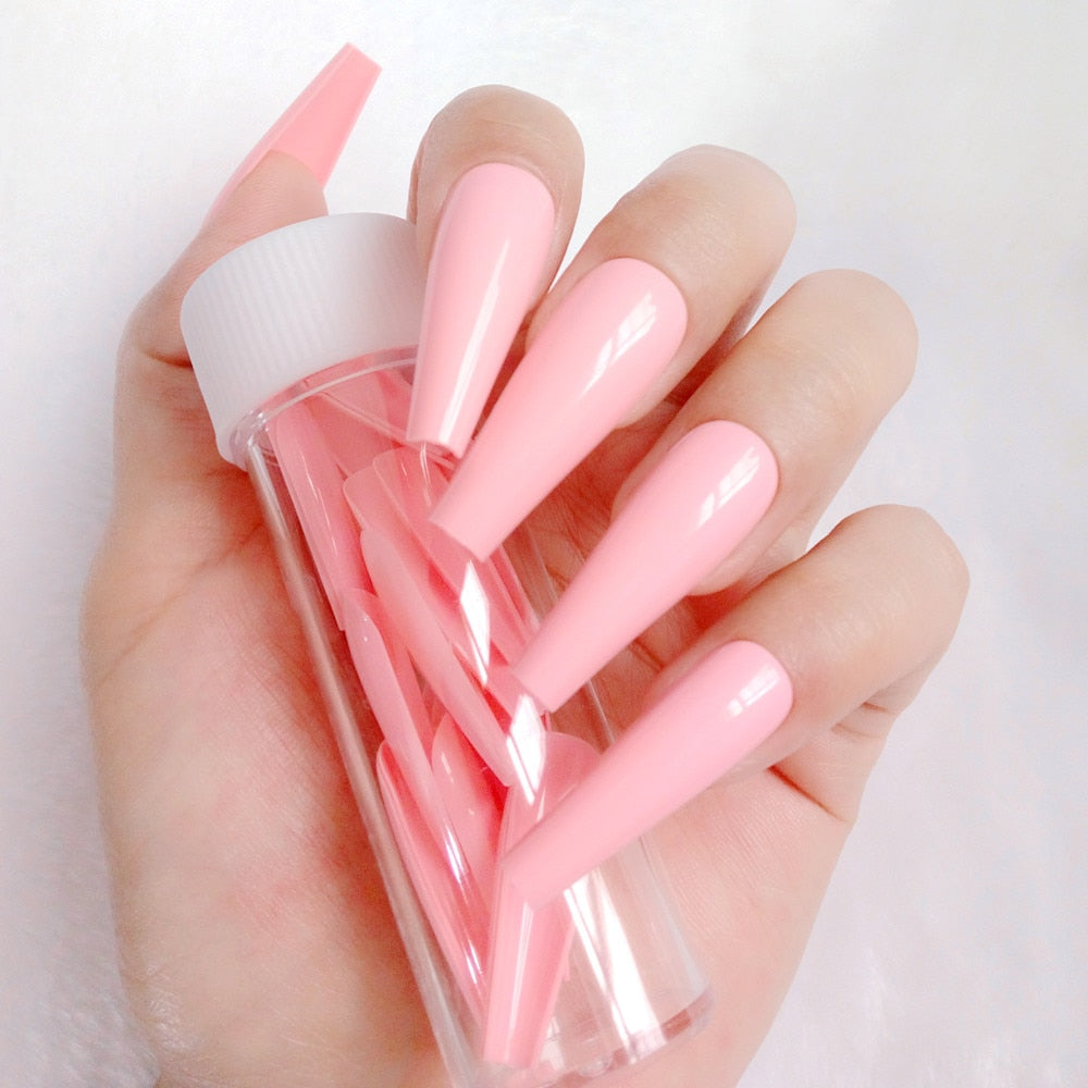 24Pcs Super Long Ballerina Coffin False Nails Glossy Light Pink Artificial Press On Nails Full Cover Fingernails Manicure Tool-Nail Inspo