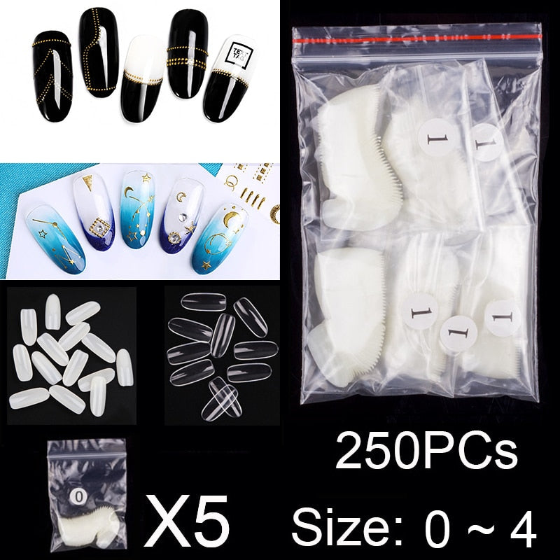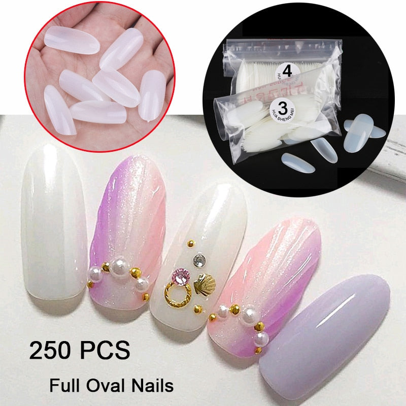 250 PCS Same Size Fake Nails Oval Shape False Nail Tips For Drawing Nail Design Acrylic Full Nails Art Size 0 1 2 3 4 Available-Nail Inspo