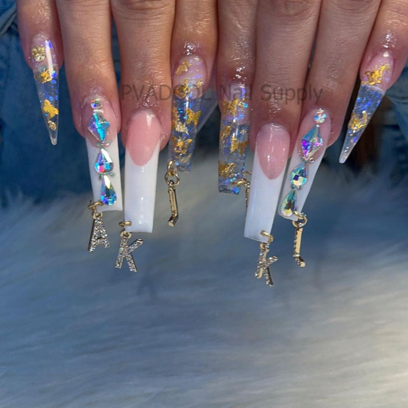 26pcs Zircon Alphabet Letter Nail Art Piercing Charms Metal Alloy Dangle Pierced Acrylic Tips Nail Decorations-Nail Inspo