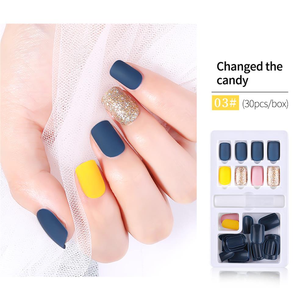 - Choose a suitable size of adhesive stickers or nail glue for your nails and stick it on your nails.
