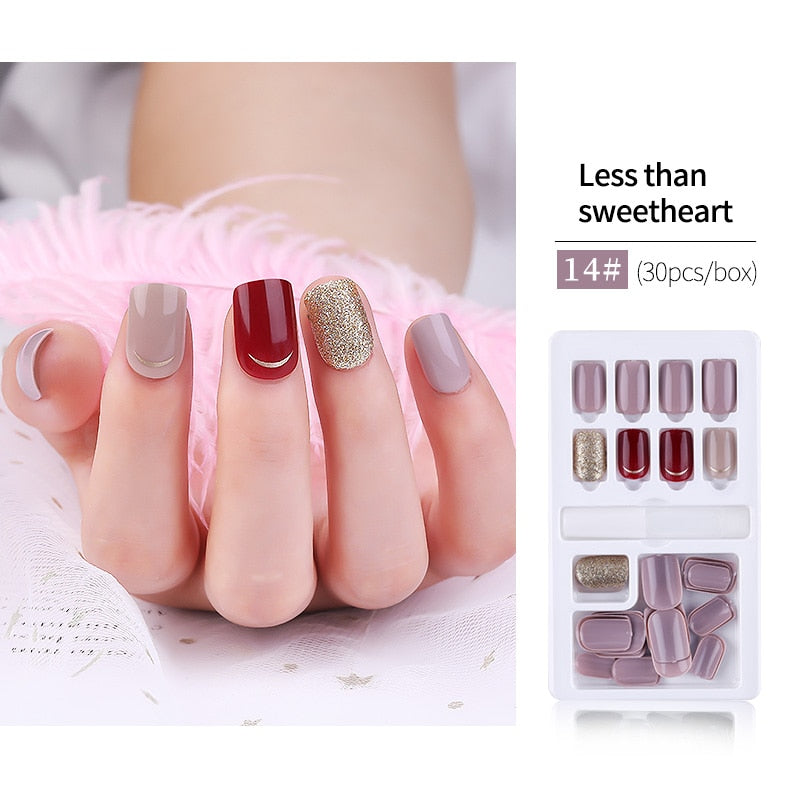 30pcs False Nail Artificial Tips Set Full Cover for Short Decoration Press On Nails Art Fake Extension With Glue detachable-Nail Inspo