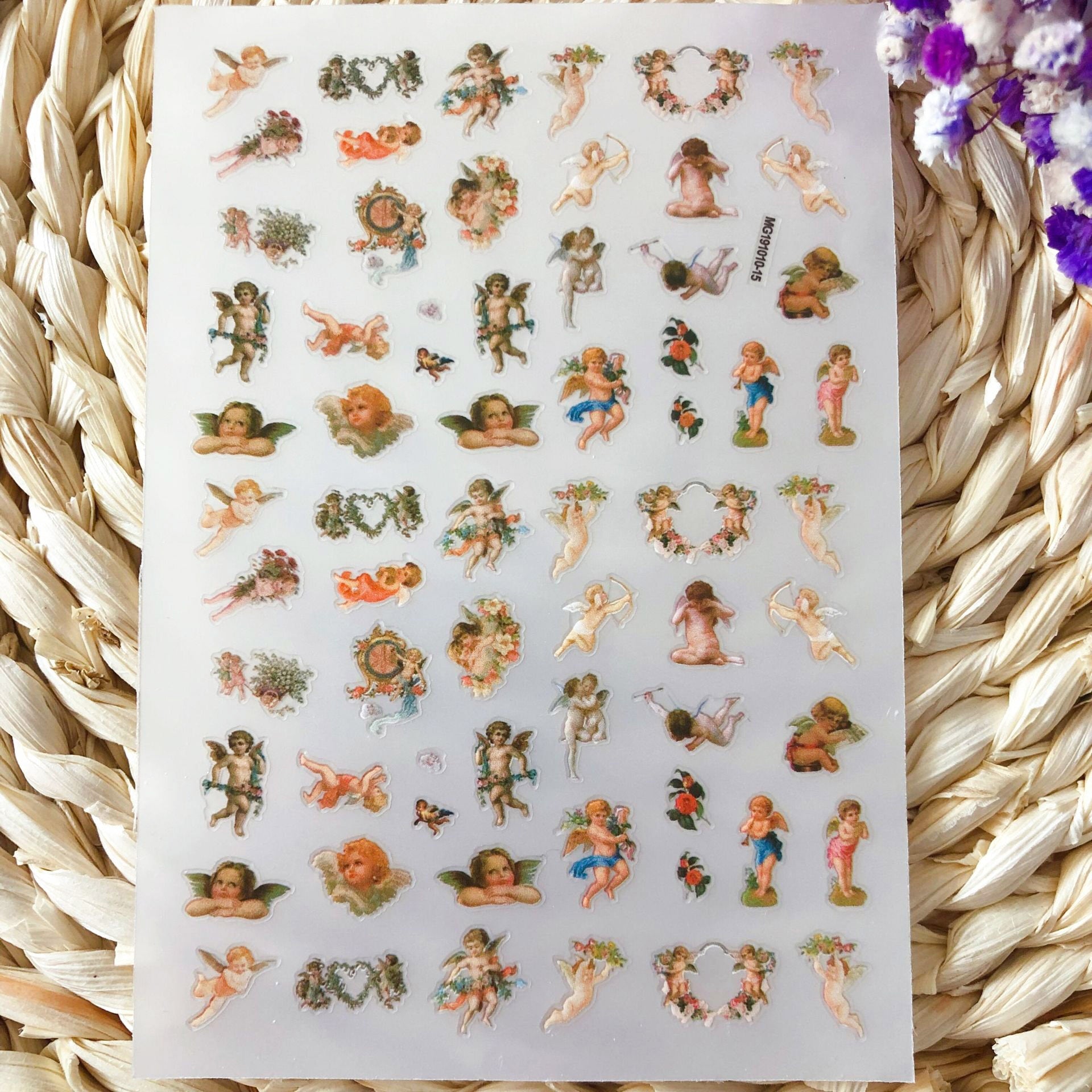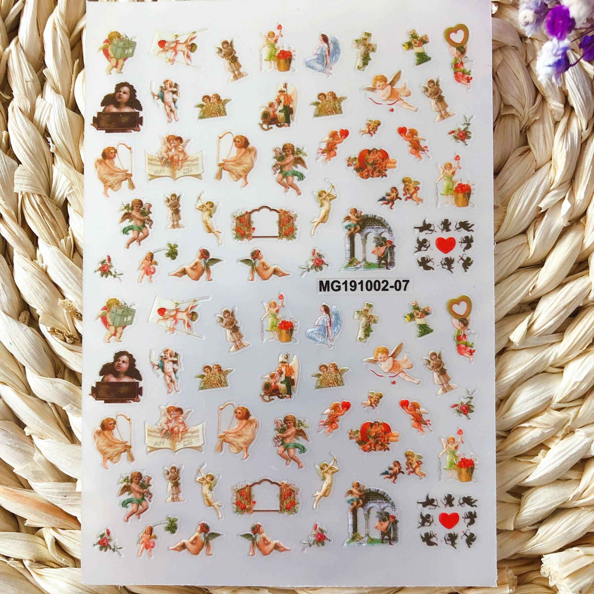3D Angel Pattern Nail Stickers Cupid Flower Self-Adhesive Transfer Decals Slider DIY Tips Nail Art Decorations Manicure-Nail Inspo