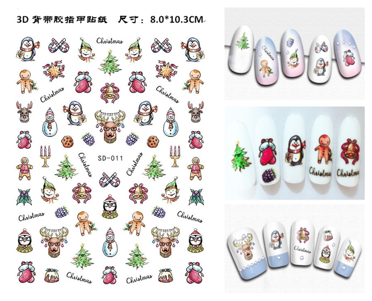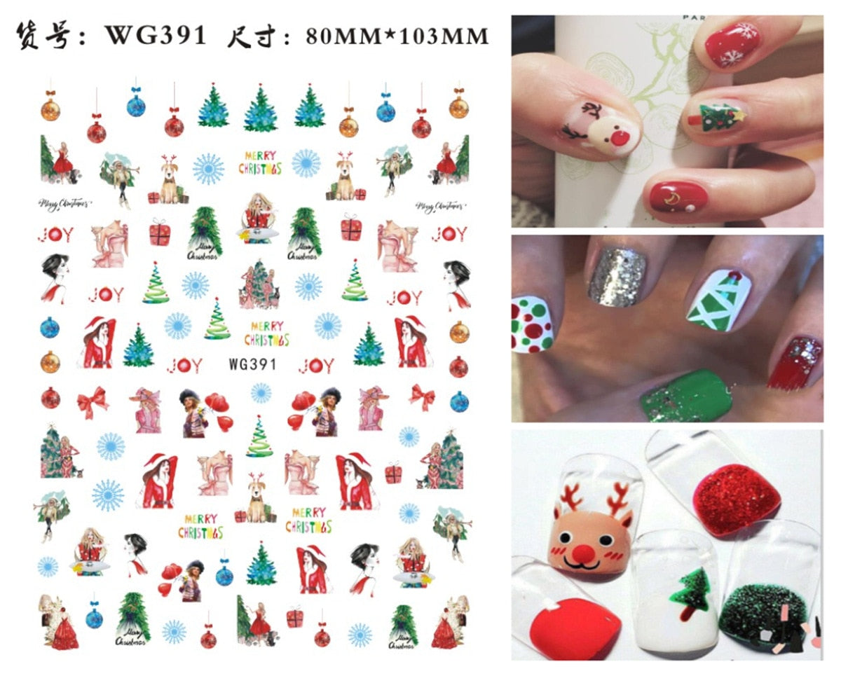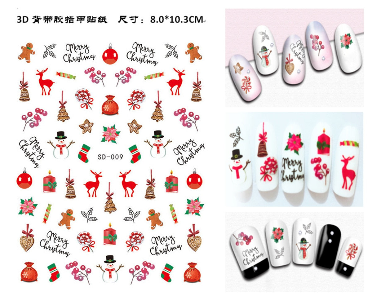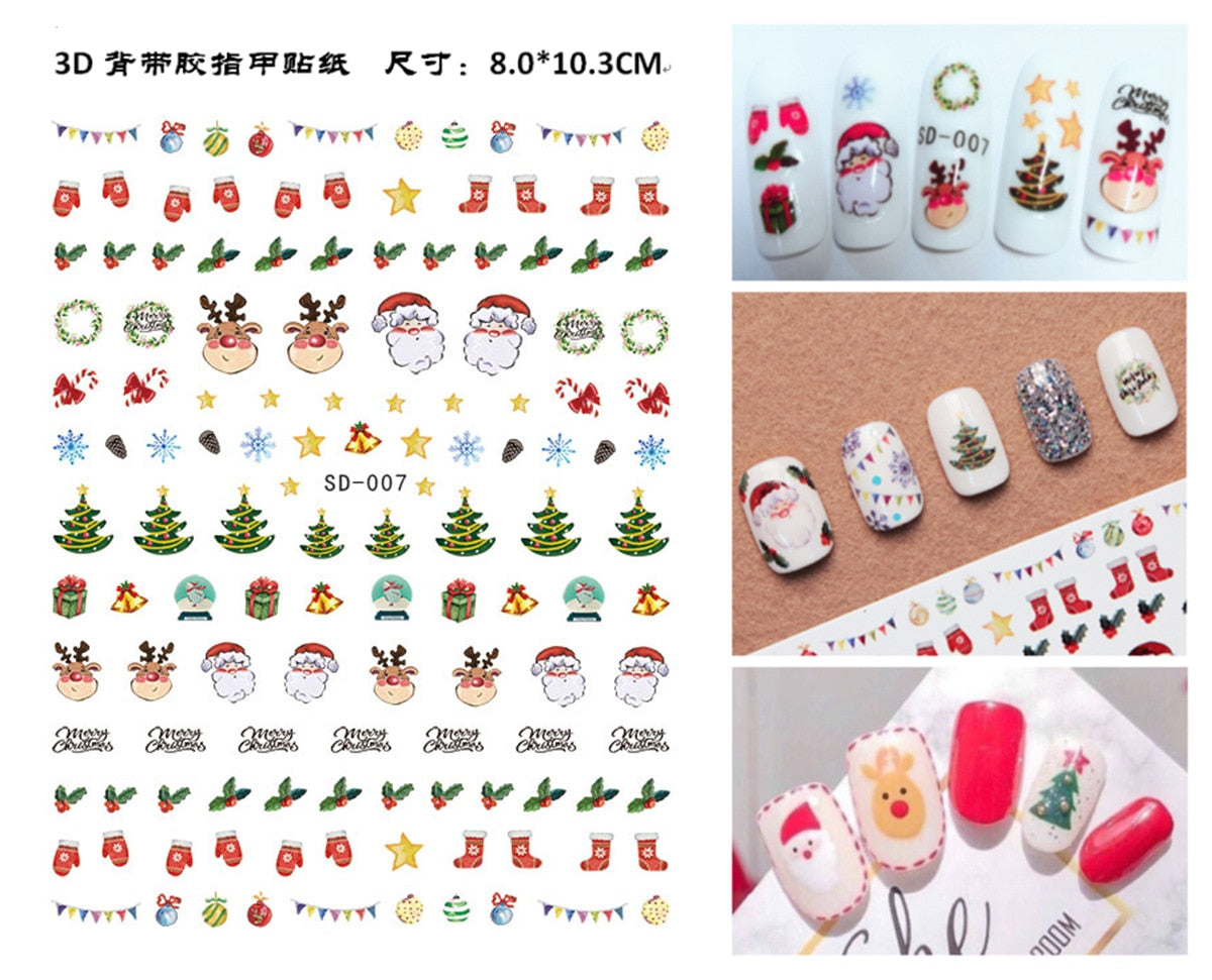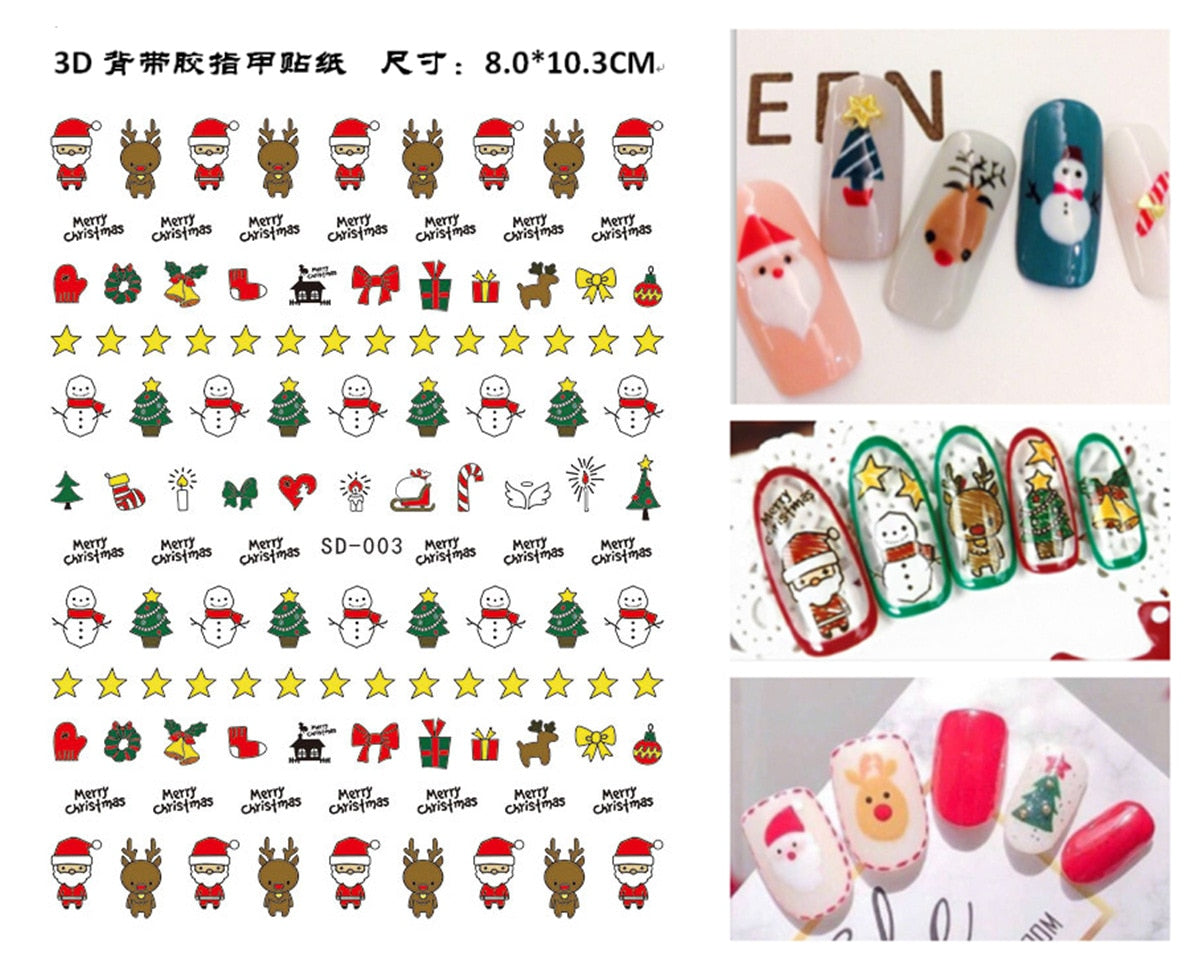 3D Christmas Autumn Winter Nail Sticker Santa Claus Elk Snowman Christmas Tree Star Deer Sliders Manicure Art Gel Polish Decals-Nail Inspo