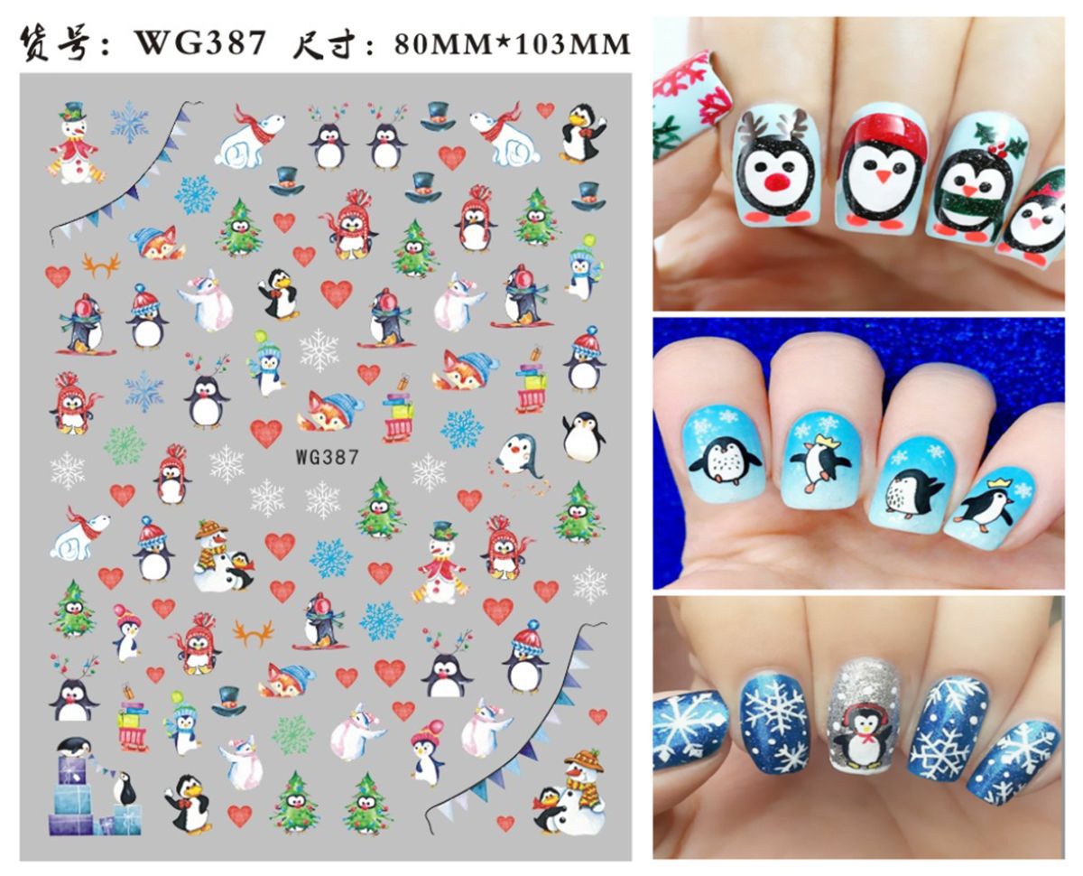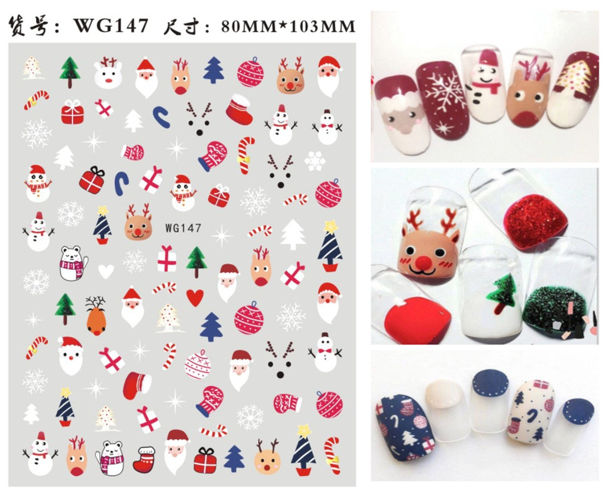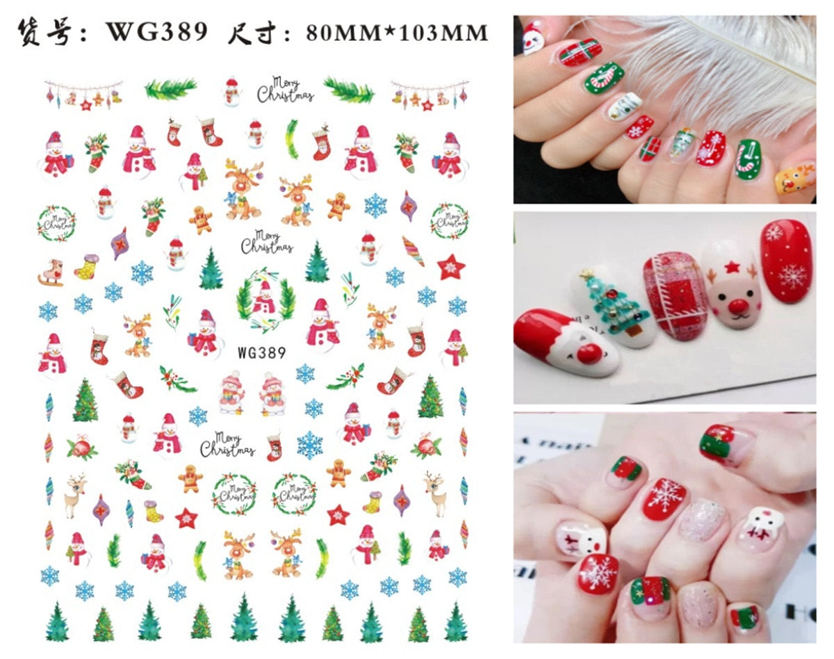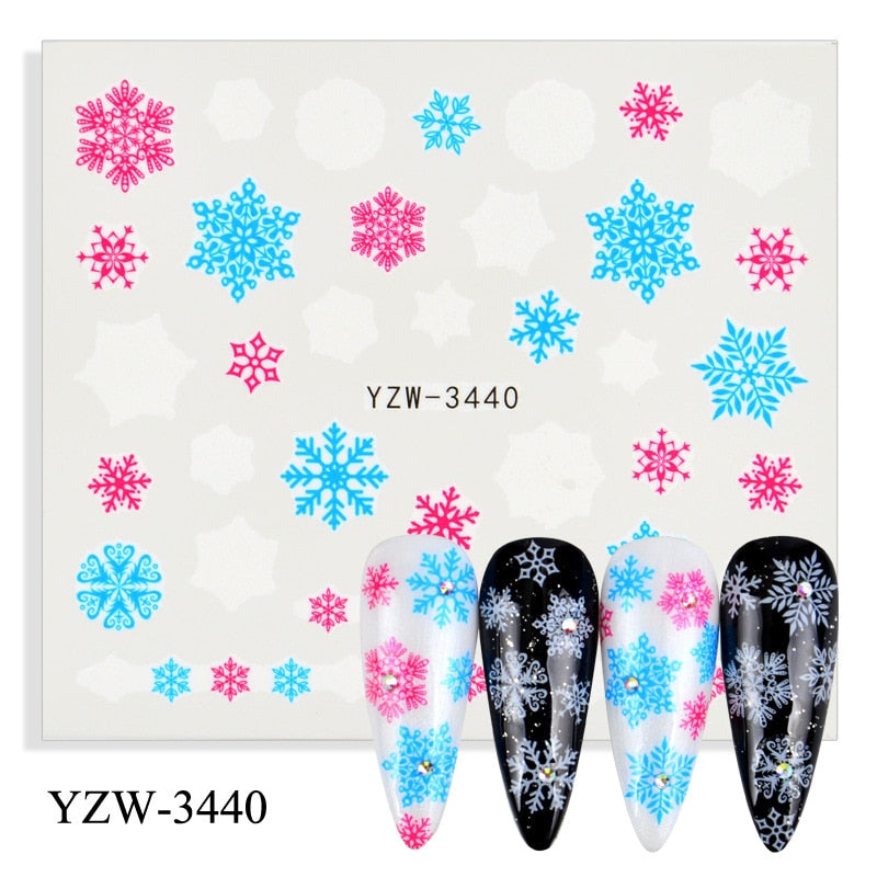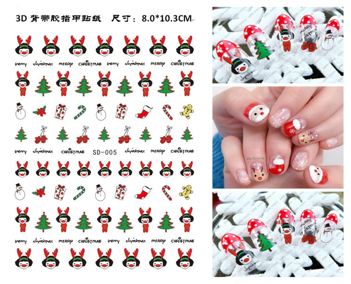 3D Christmas Autumn Winter Nail Sticker Santa Claus Elk Snowman Christmas Tree Star Deer Sliders Manicure Art Gel Polish Decals-Nail Inspo