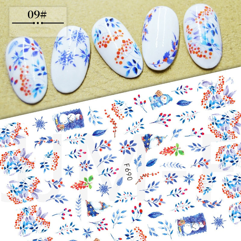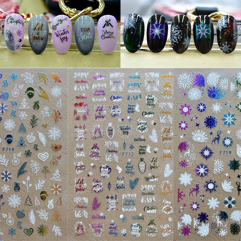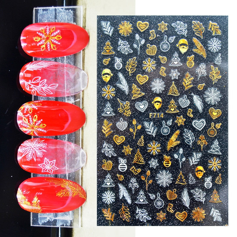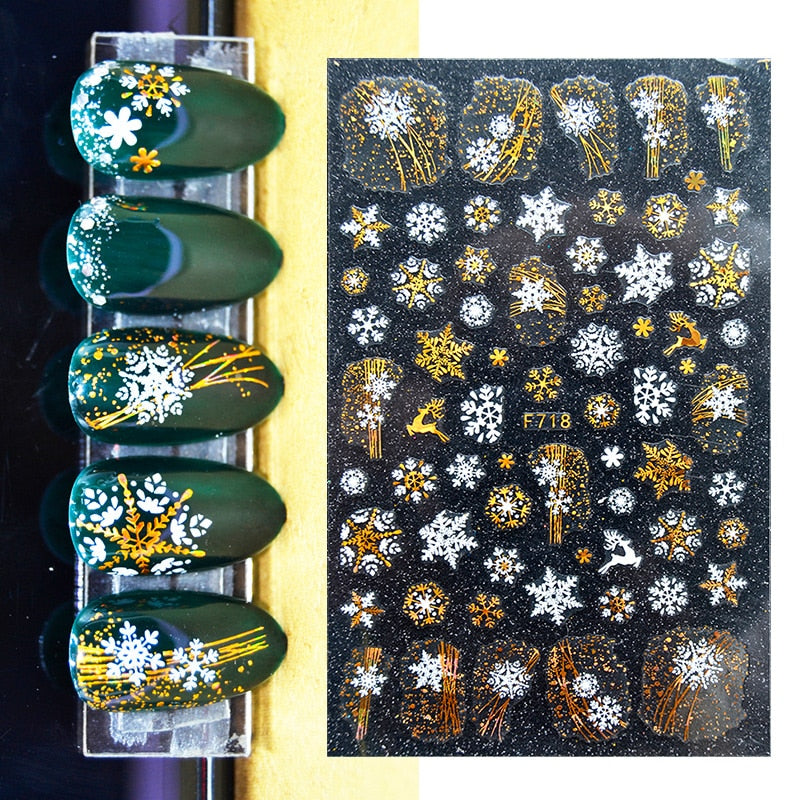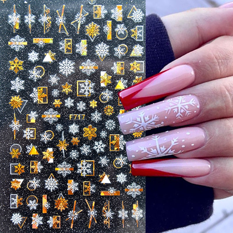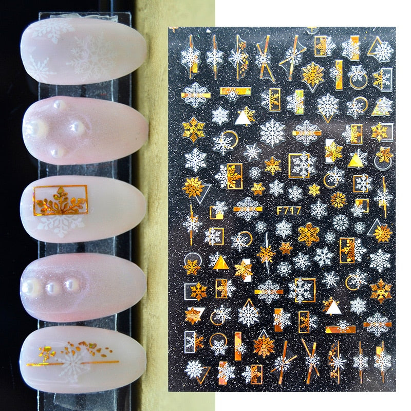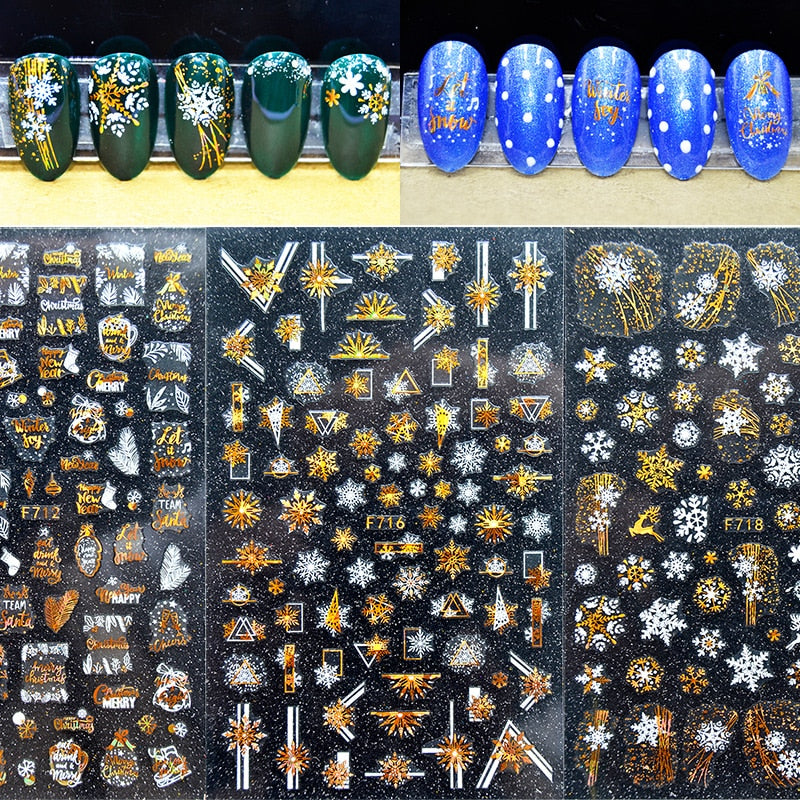 3D Christmas Nail Art Decoration Stickers Sparkly Gold White Colorful Glitter Geometry Snowflake Winter Slider Nail Foils-Nail Inspo