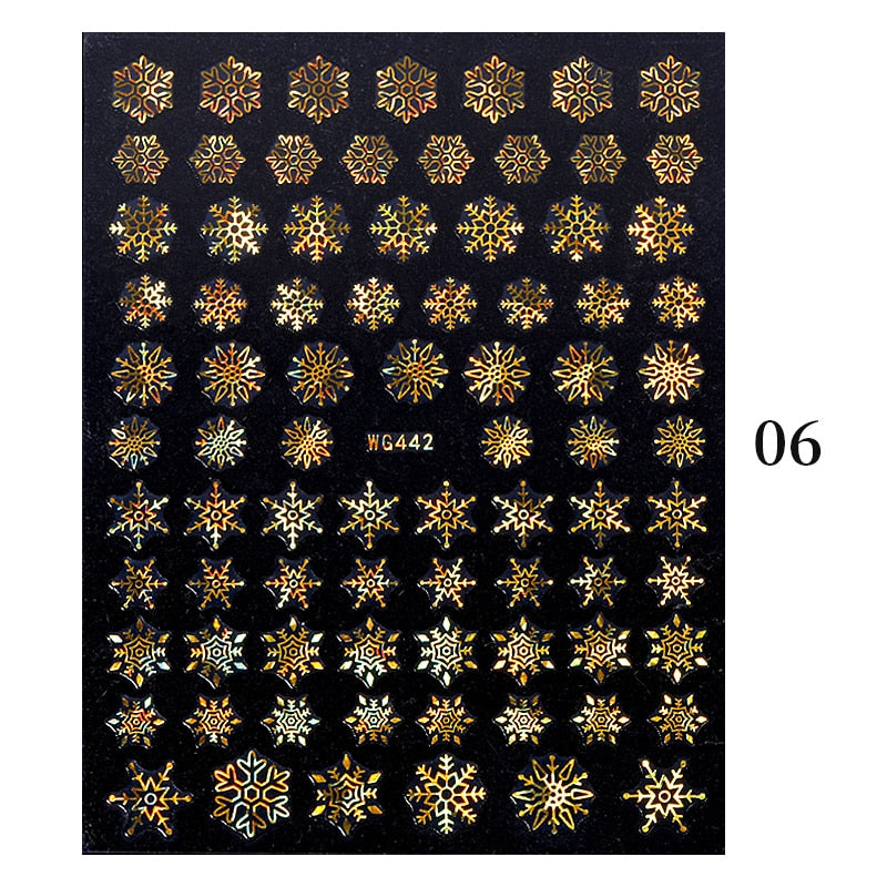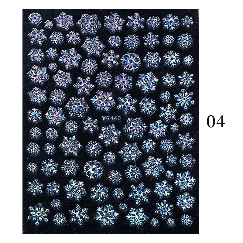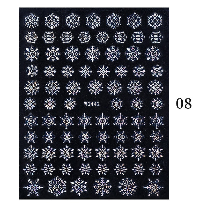 3D Christmas Nail Art Decoration Stickers Sparkly Gold White Colorful  Glitter Geometry Snowflake Winter Slider Nail Foils-Nail Inspo