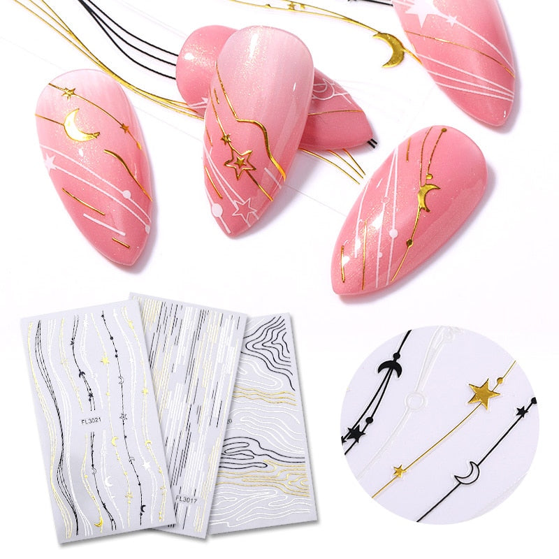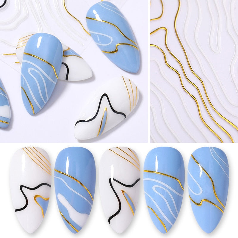 3D Nail Art Sticker Iridescent Gold Black Gilded Stripe Wave Line Adhesive Transfer Foils DIY Decal Manicures Tips Decoration-Nail Inspo
