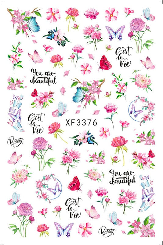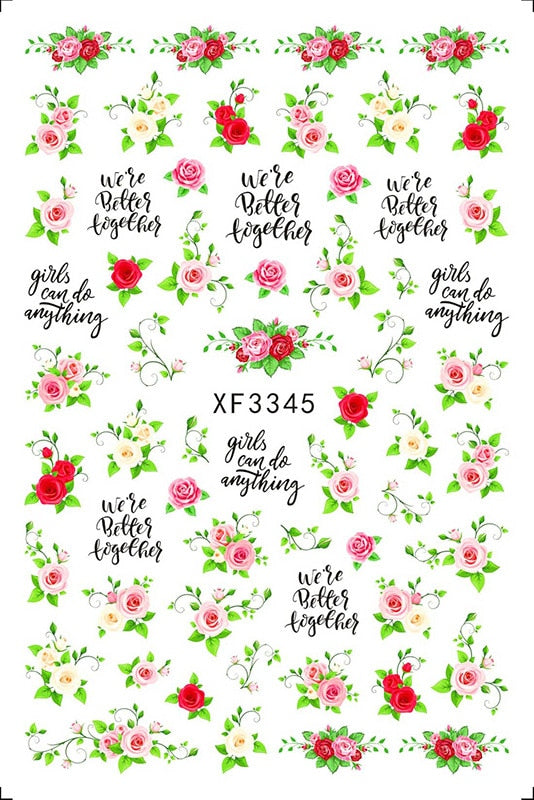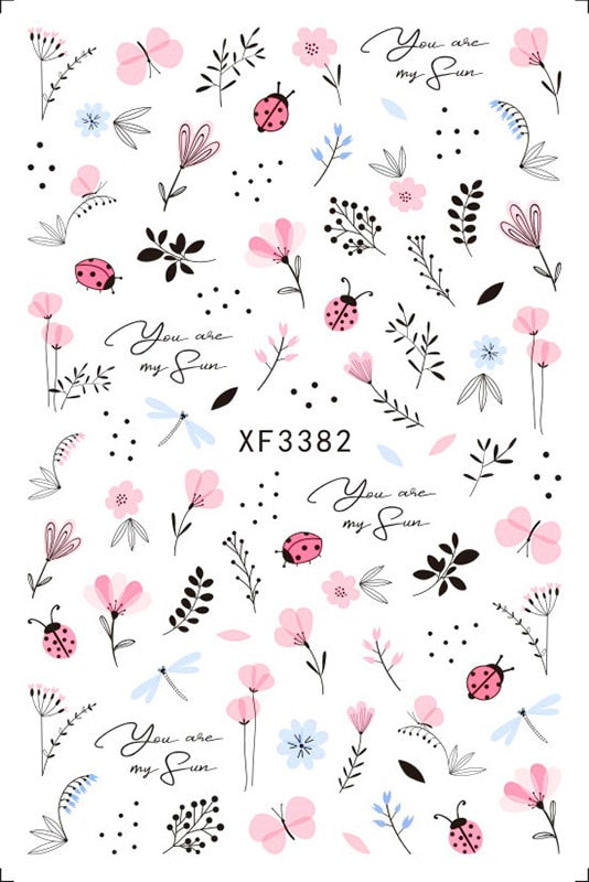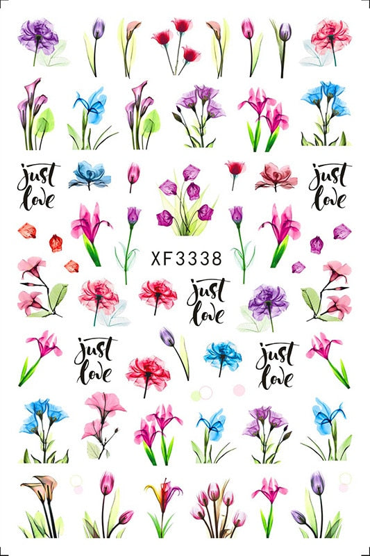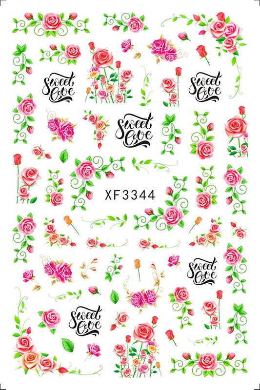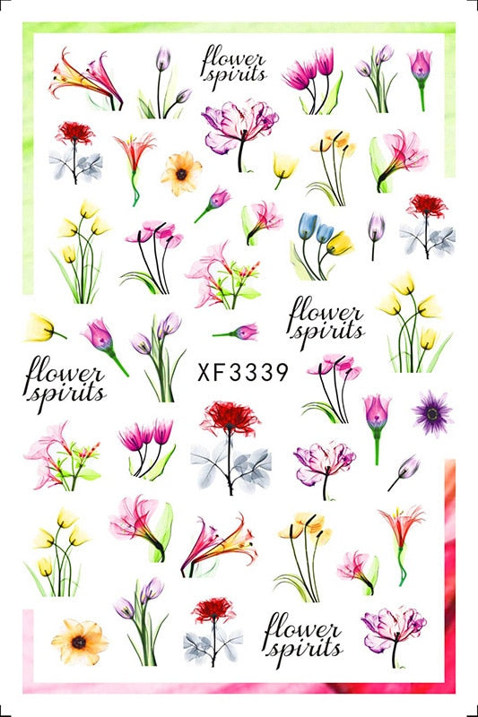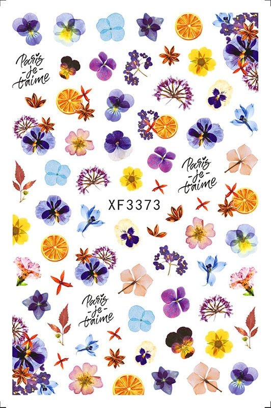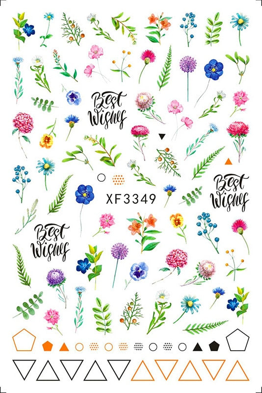 3D Nail Sticker Flowers Leaves Abstract Floral Decals And Sticker Nail Foils Slider Nail Art Decals Manicure Nails Accesories-Nail Inspo
