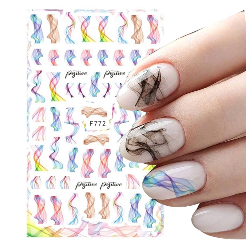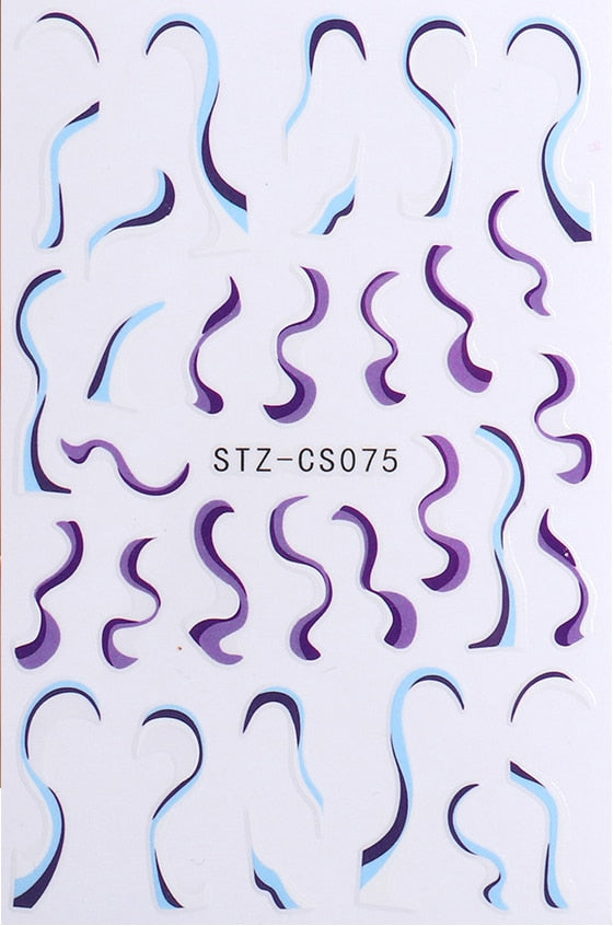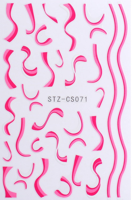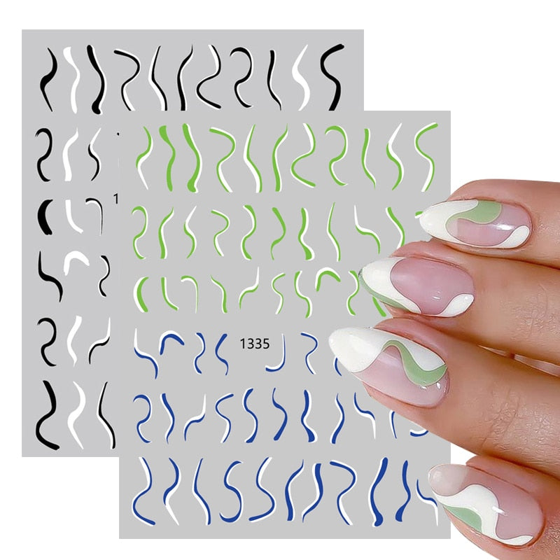 3D Swirl Lines Nail Sticker Geometry Irregular Whirling Wave Cow Print Decal on Nails Art Charms Manicure Slider Tip Accessories-Nail Inspo