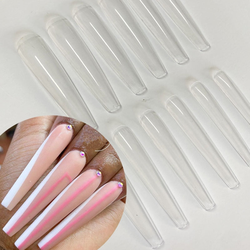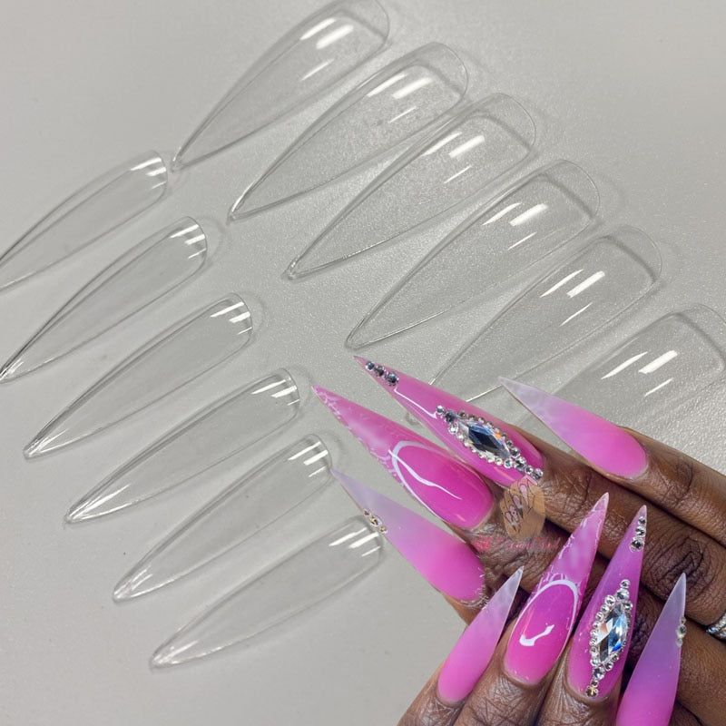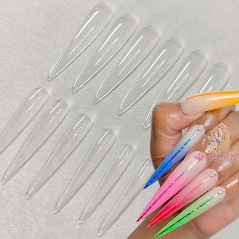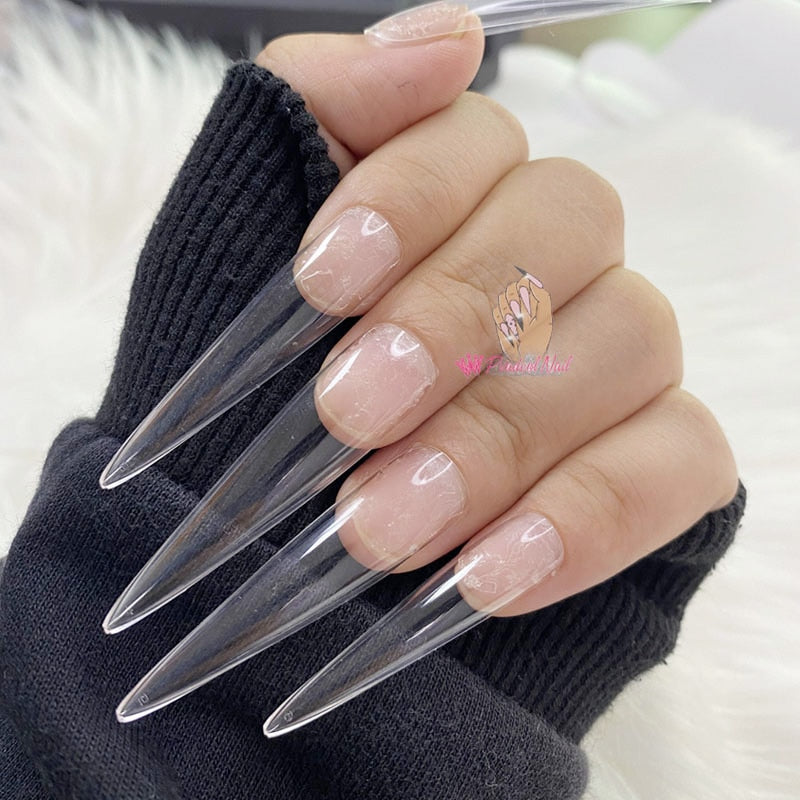 3XL Extra Long Stiletto Acrylic Press On Fake Nails Tips Clear Artificial Full Cover False Finger Sculpted Nail Manicure Tools-Nail Inspo