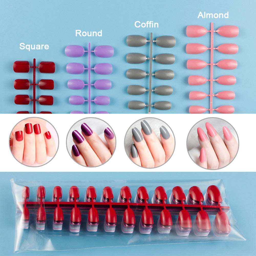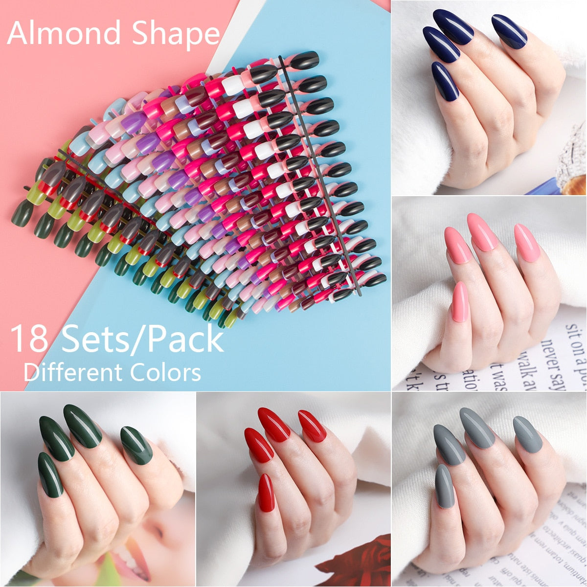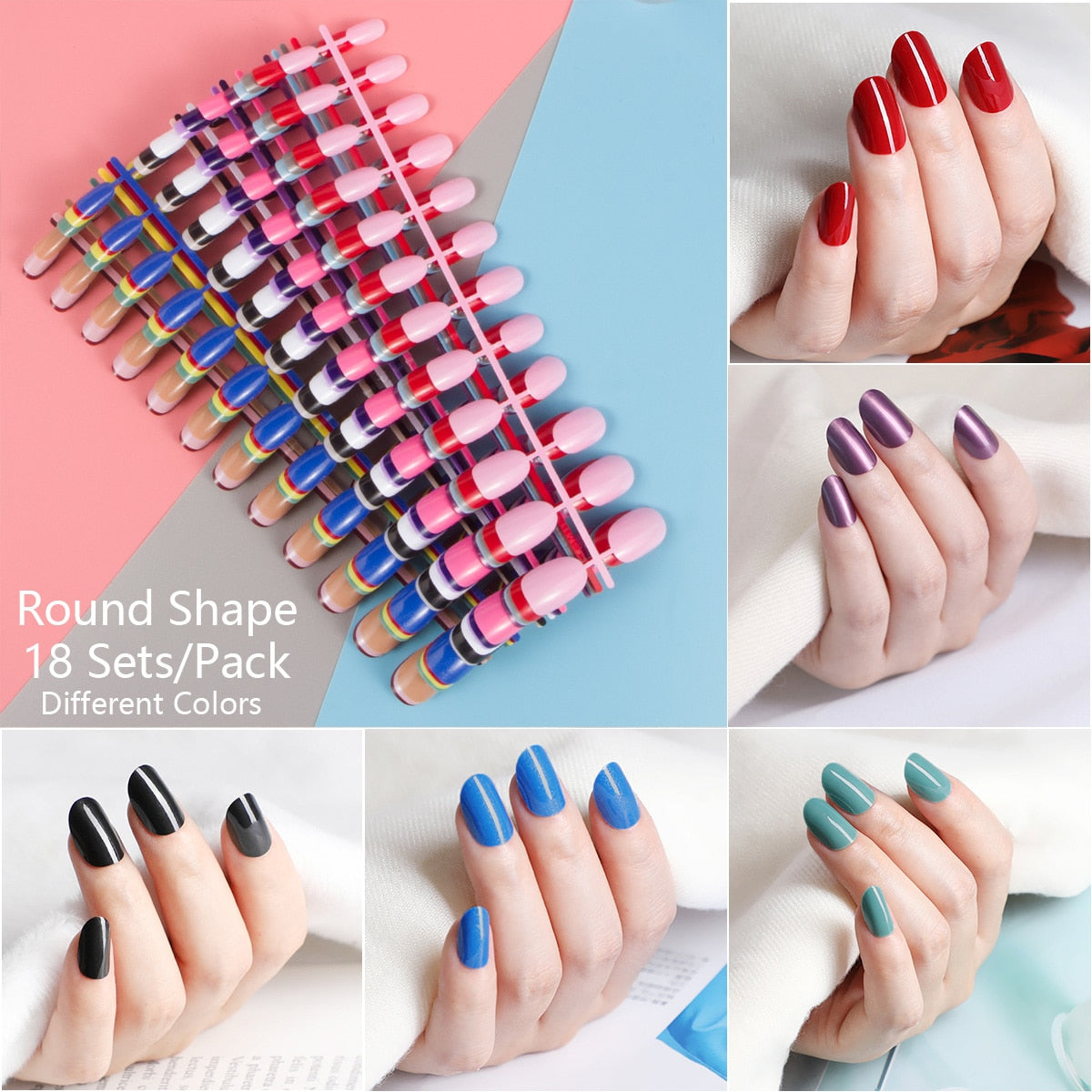 432pcs 18 Mixed Solid Colors Short Round Almond Coffin Shape Nail Tips Full Cover False Nail Tips Press On Fake Nails 18 Strips-Nail Inspo