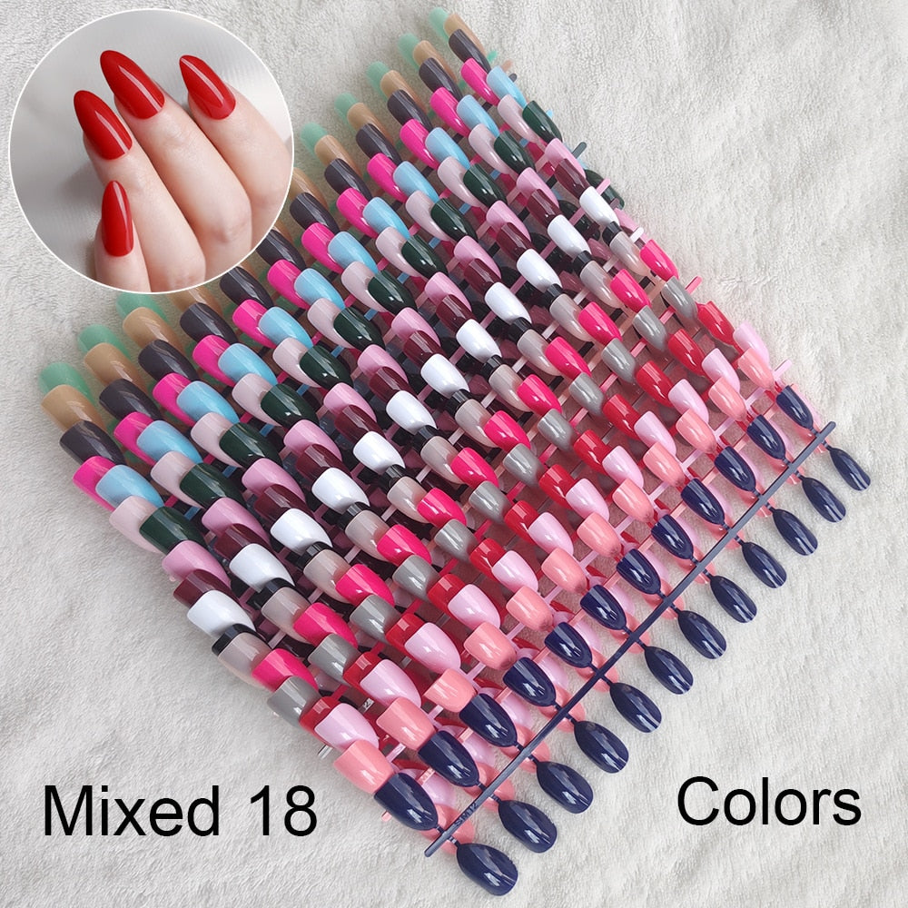 432pcs/pack Mixed 18 Colors Full Cover Stiletto Nails Almond Fake Nails Acrylic mountain peak Sharp Ending False Nail Art Tips-Nail Inspo