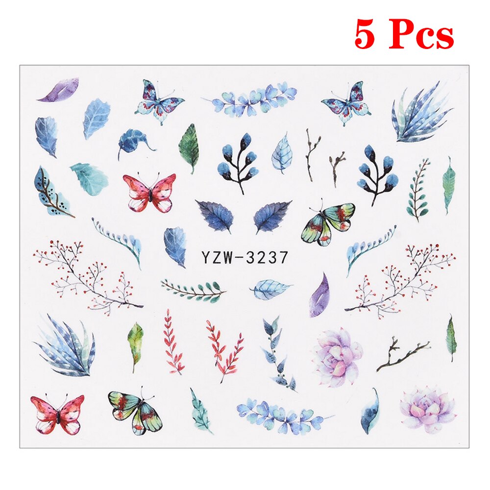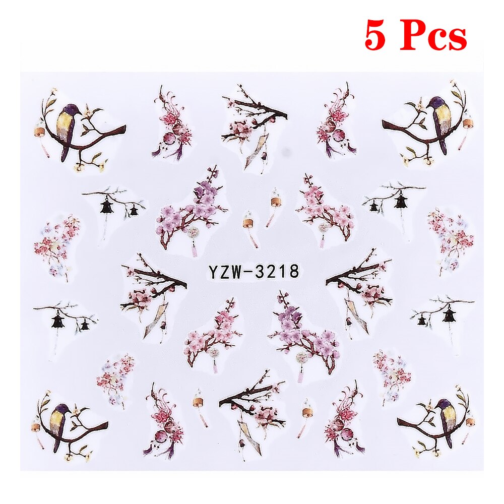 5 Pcs Flower Water Nail Stickers Decals Wind-Bell Butterfly Phalaenopsis Transfer Tip Flora Painting Slider Manicure Decoration-Nail Inspo