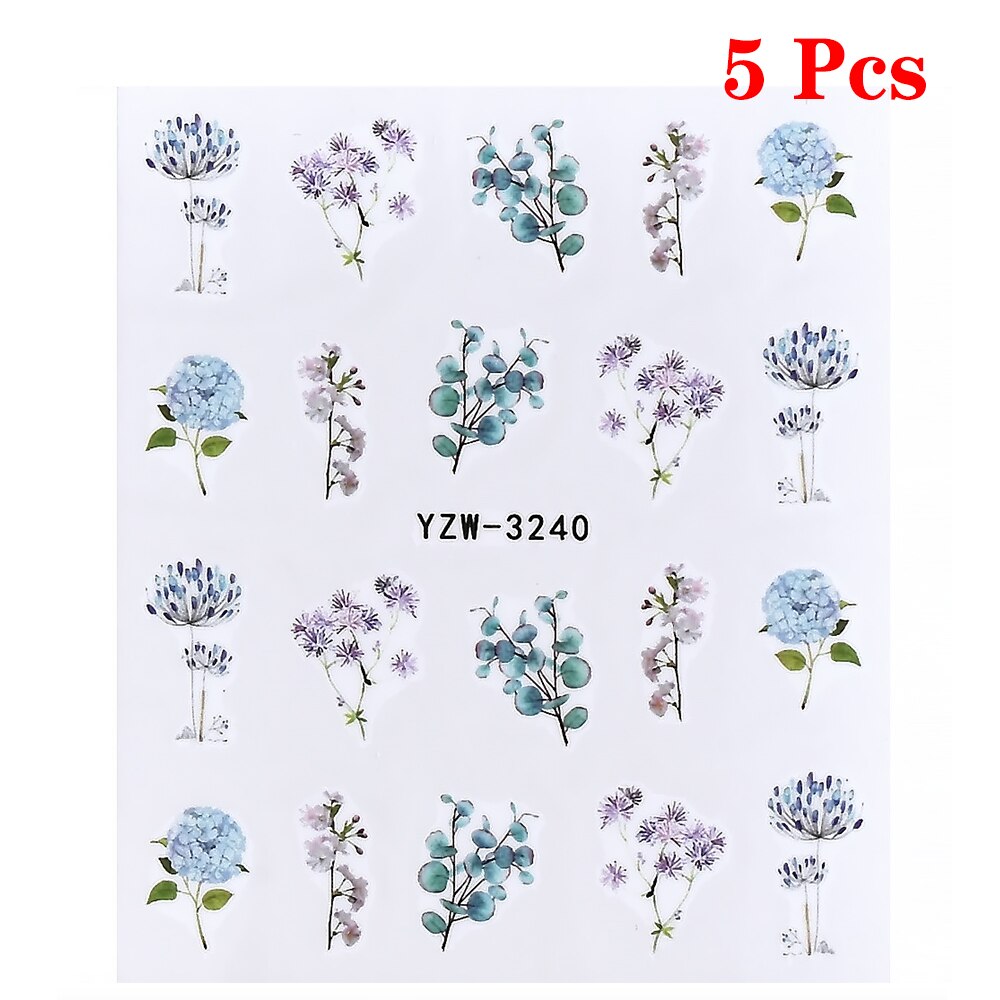 5 Pcs Flower Water Nail Stickers Decals  Wind-Bell Butterfly Phalaenopsis Transfer Tip Flora Painting Slider Manicure Decoration-Nail Inspo