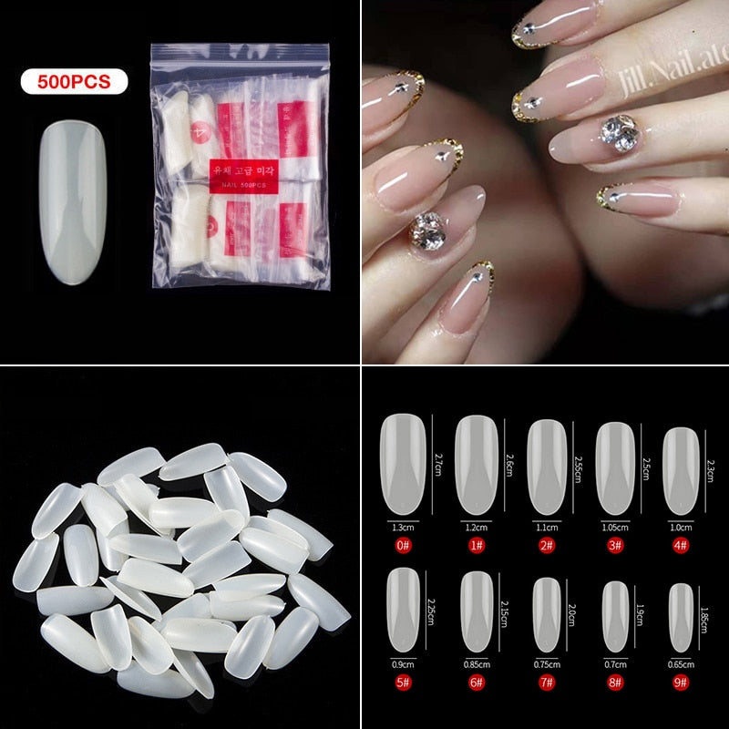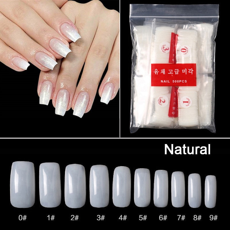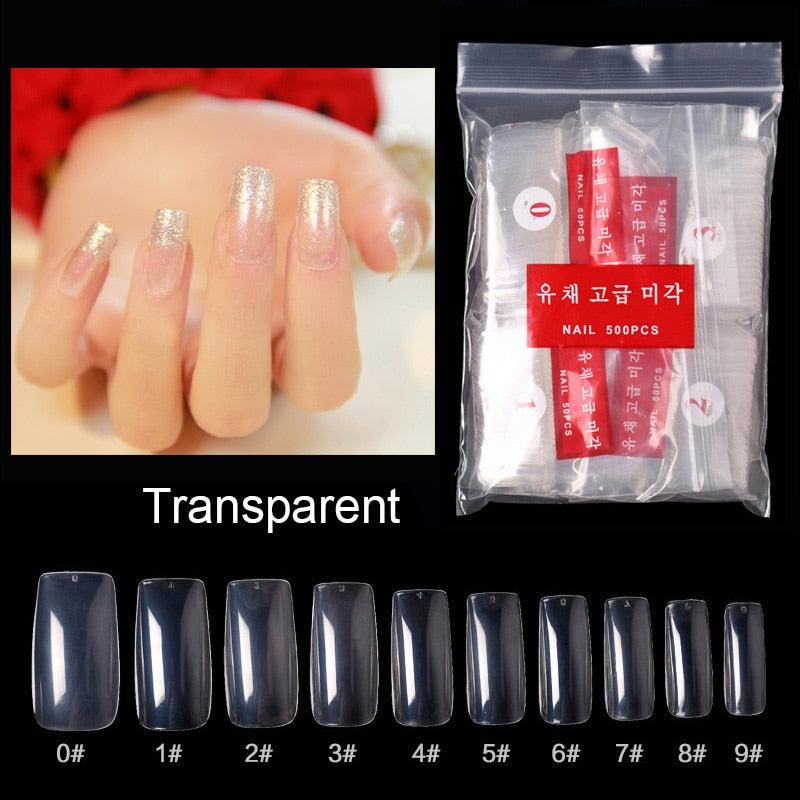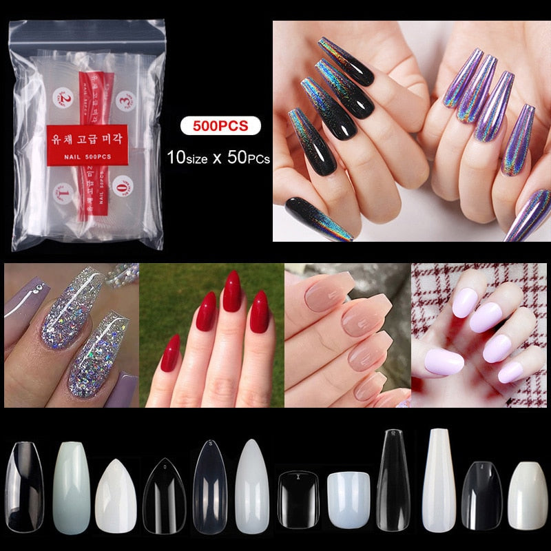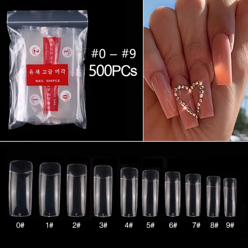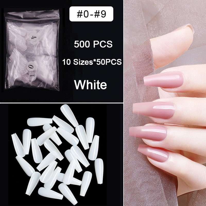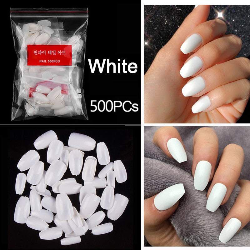 500pcs/pack Short Nails Full Cover Fake Nail Tips Long Coffin Nail Half Cover False Nails Ballerina Nail Tips Art Tips Nails-Nail Inspo