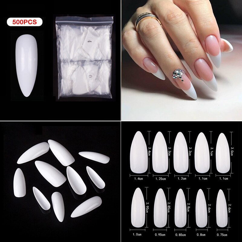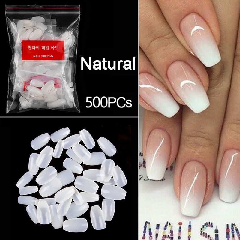 500pcs/pack Short Nails Full Cover Fake Nail Tips Long Coffin Nail Half Cover False Nails Ballerina Nail Tips Art Tips Nails-Nail Inspo