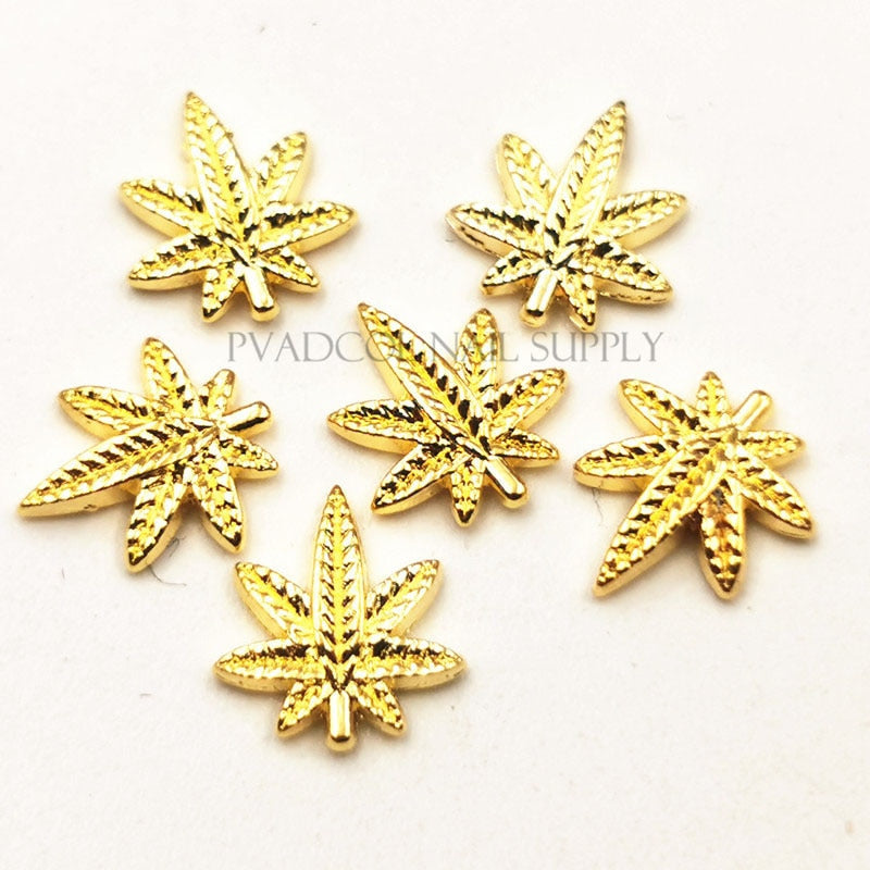 50pcs Weed Nail Charms Pot Gold Weed Leaf Nail Decor Acrylic Nails Manicure Decoration-Nail Inspo