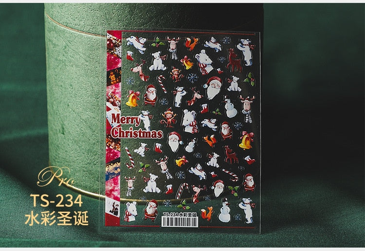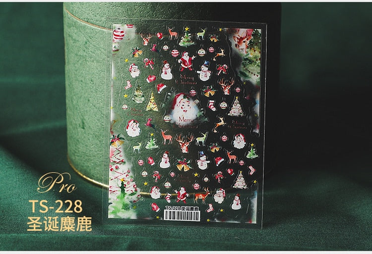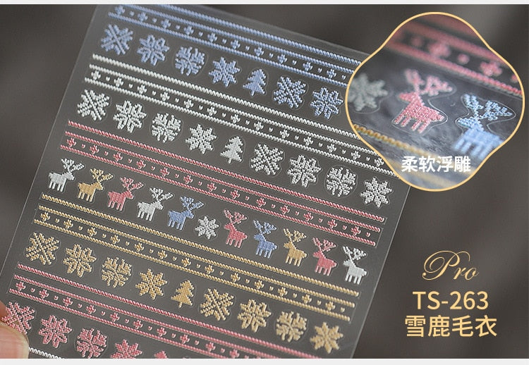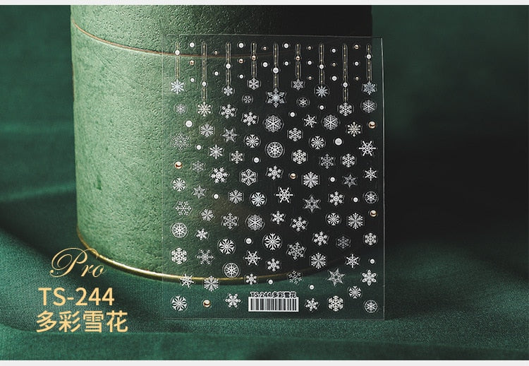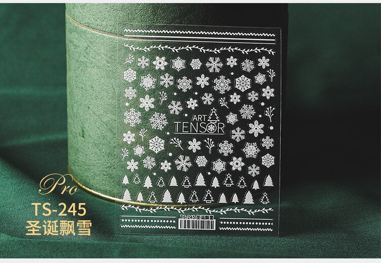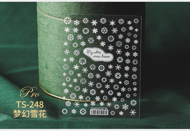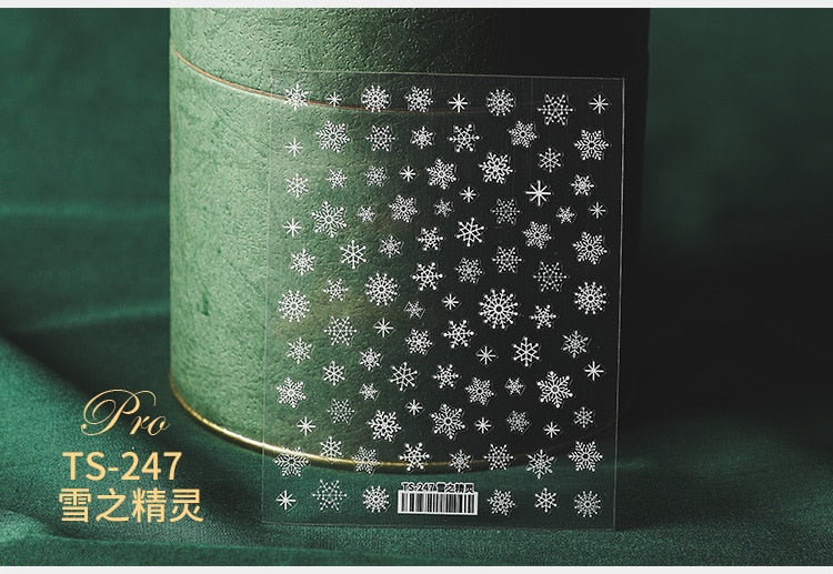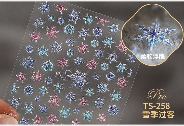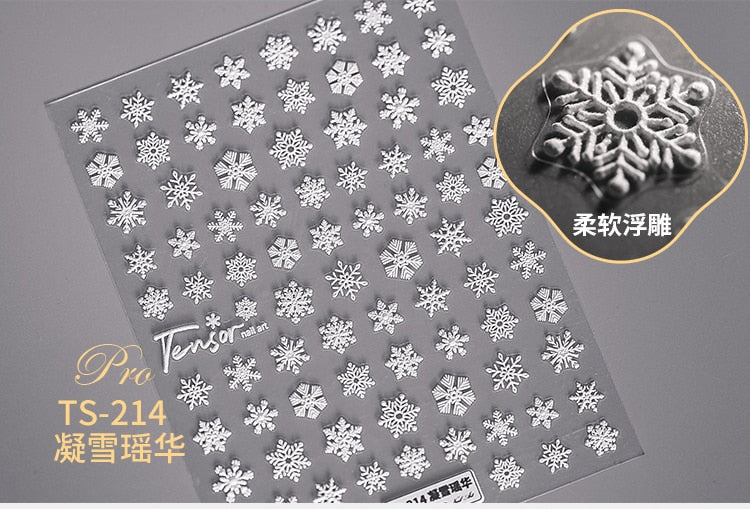 5D Christmas SnowFlake Snowman Nails Art Sticker Pro Frosted Thin Transparent Embossed New Year Nail Art Design Nail Stickers-Nail Inspo