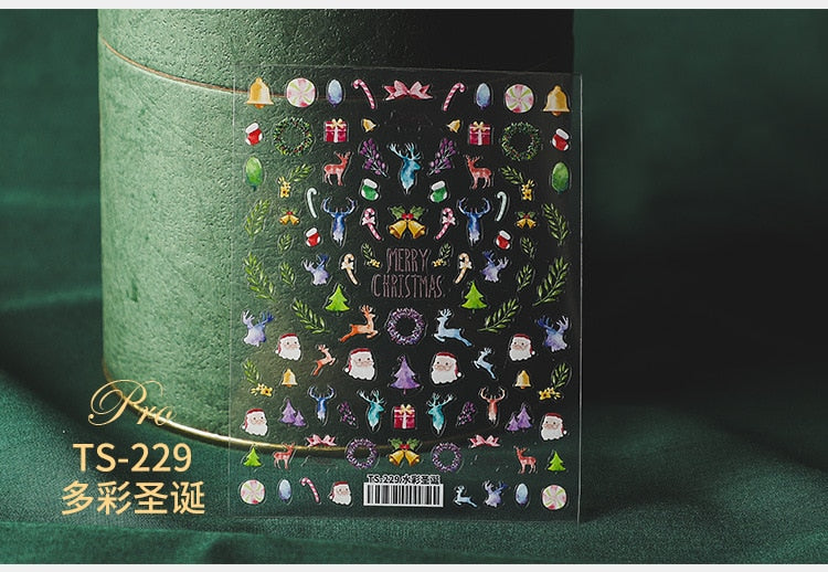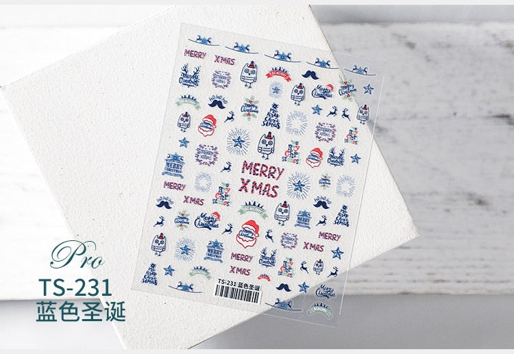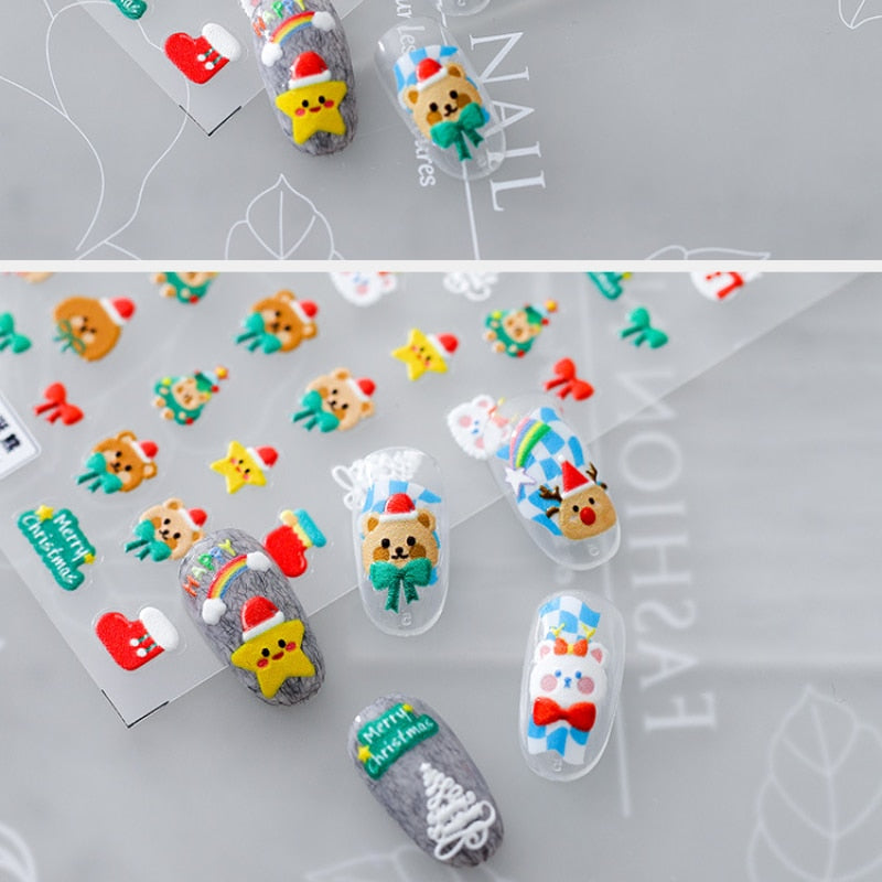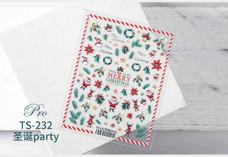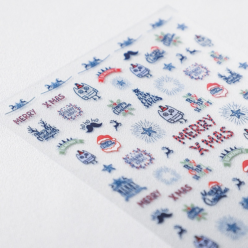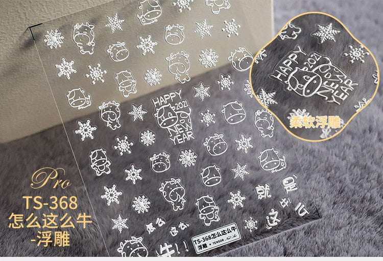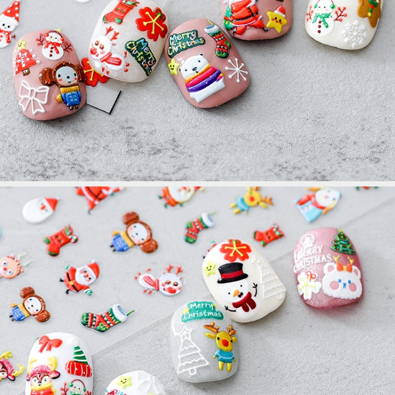 5D Christmas SnowFlake Snowman Nails Art Sticker Pro Frosted Thin Transparent Embossed New Year Nail Art Design Nail Stickers-Nail Inspo