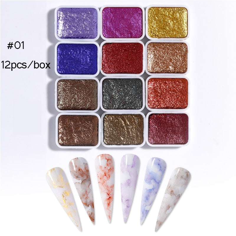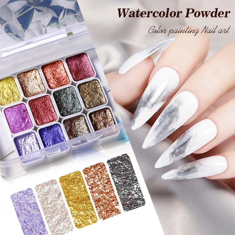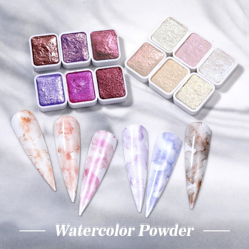 6/12pc Blooming Paints Watercolor Nail Powder For Nails Abstract Nail Art Pigment Magic Pearl Chrome Glitter Manicure Nails-Nail Inspo