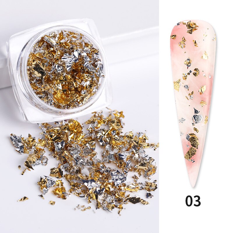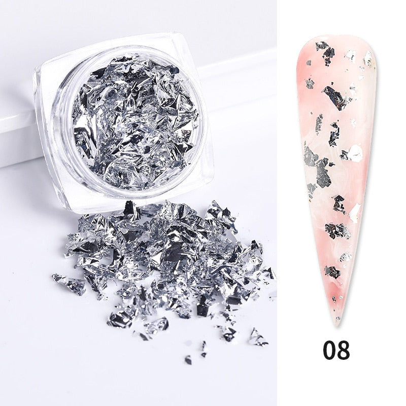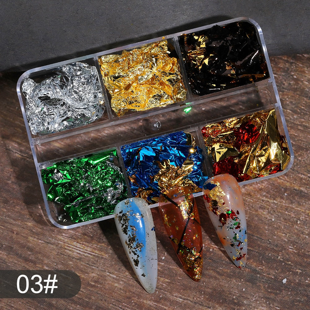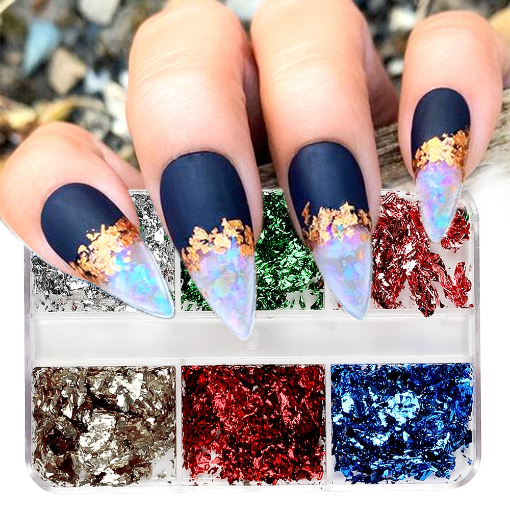 6 Grids Sparkly Foil Nails Sequins Irregular Aluminum Gold Red Summer Design Set  Mirror Chrome Glitter Flakes Gel DIY Manicure-Nail Inspo