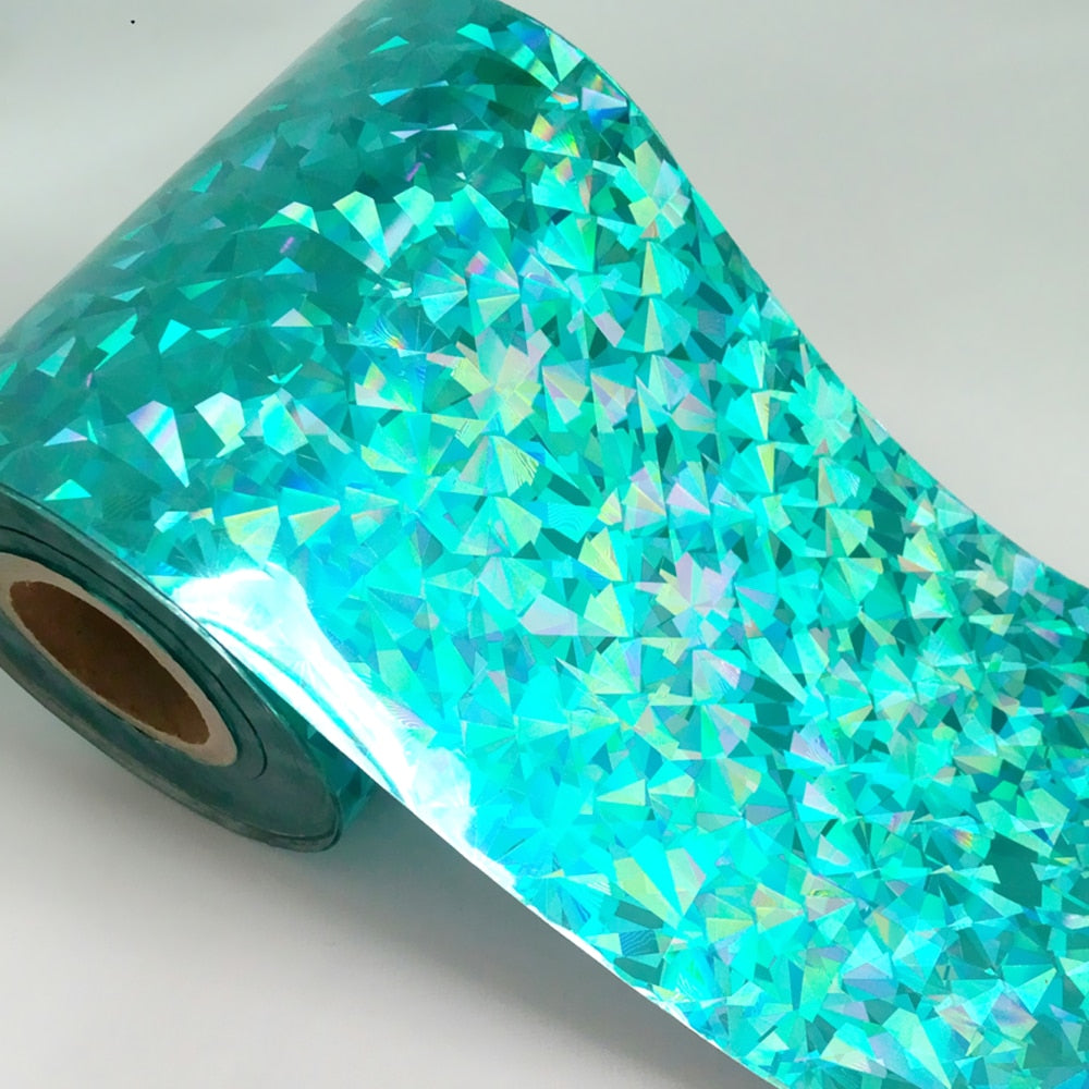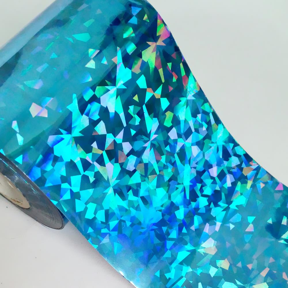 8CMx120M Holographic Broken Glass Nail Foils Laser Blue Green Hot Stamping Transfer Sticekrs Film DIY Full Cover Decals Roll-Nail Inspo