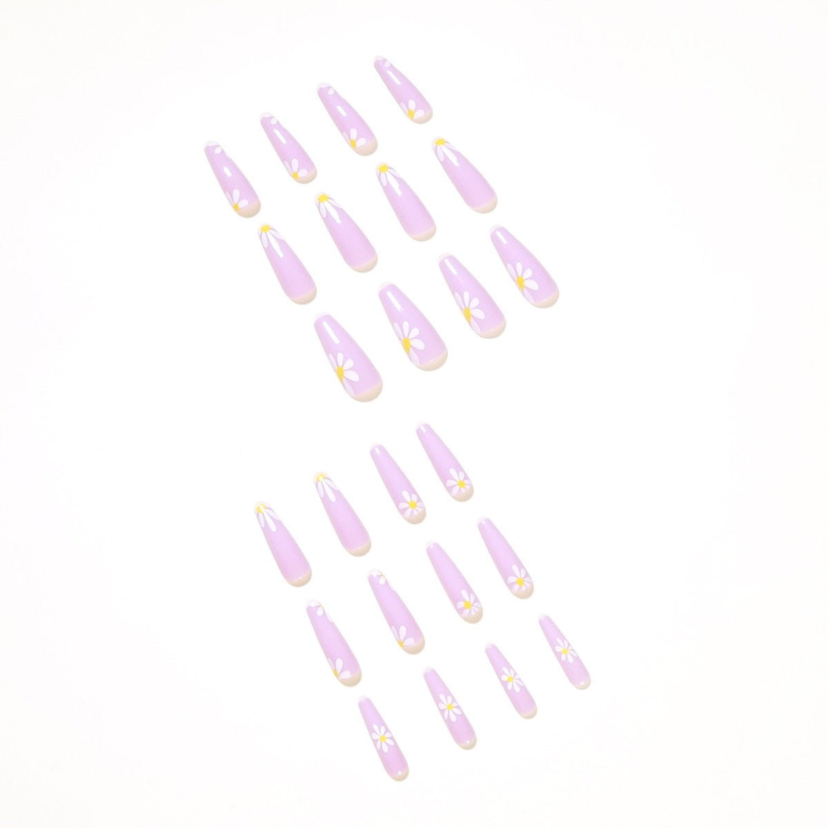 Acrylic Nail Tips Small Daisies Pattern Nail Patch Glue Long Ballerina False Nails Full Cover Coffin Fake Nails Press On Nails-Nail Inspo
