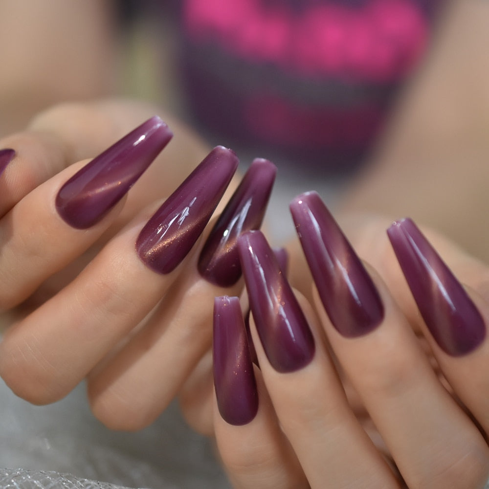 Ancient Blue Ballerina Fake Nails Hand Made Extra Long Tapered Cat Eye Pattern Hand painted Thick Galaxry Press On Nail 20 CT-Nail Inspo