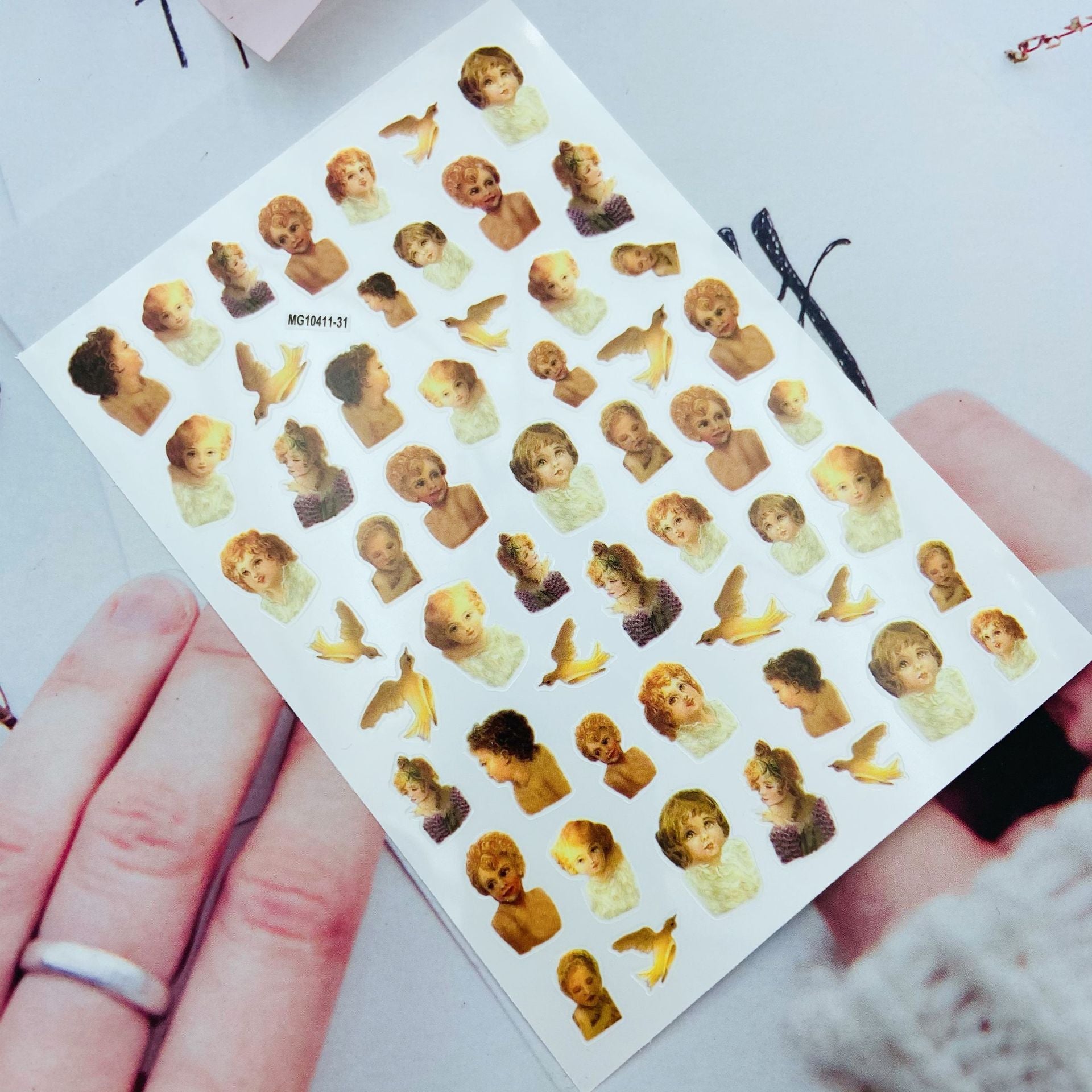 Angel Cupid Nail Stickers Flower Pattern Self-Adhesive Transfer Decals Slider 3D DIY Tips Nail Art Decorations Manicure Wrap-Nail Inspo