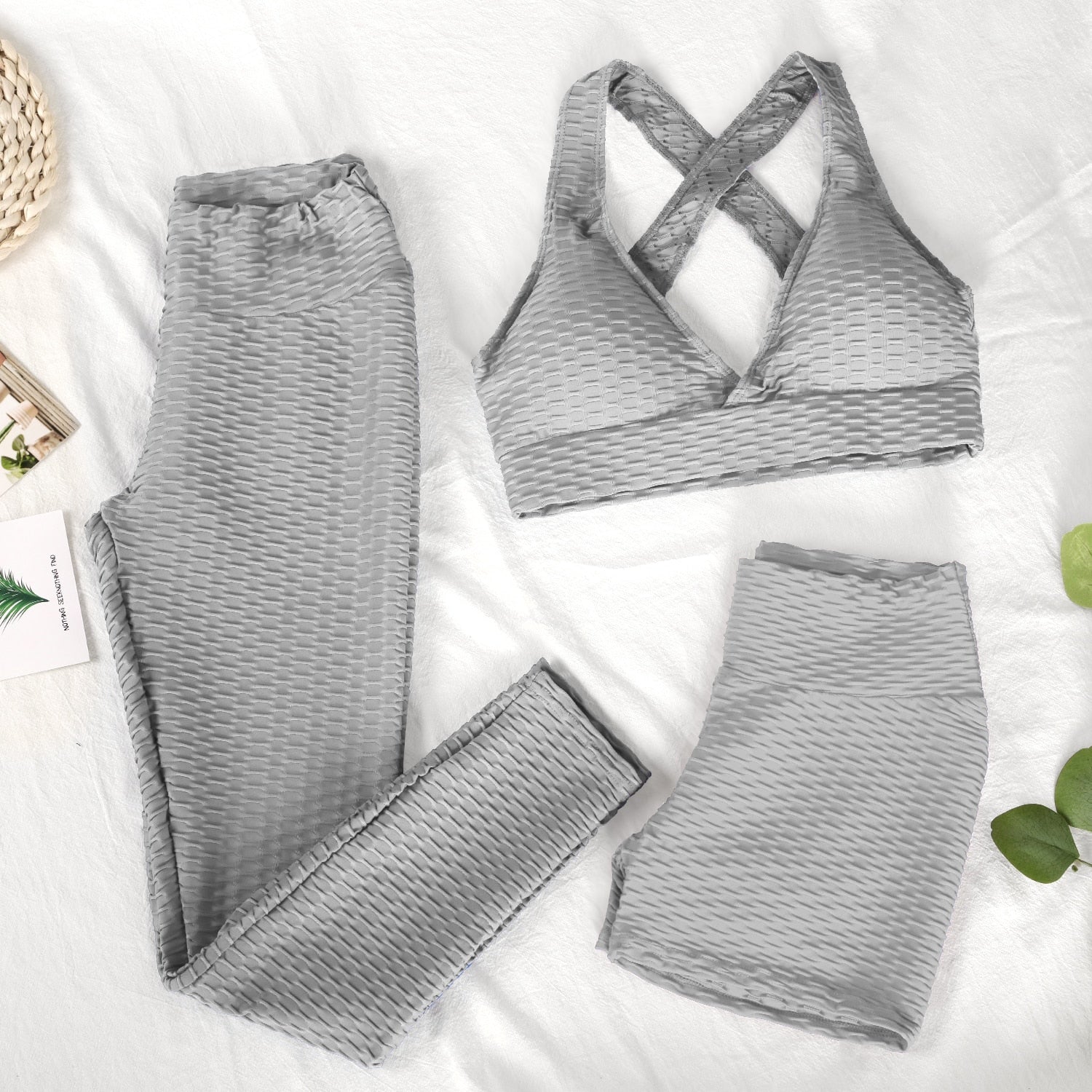 ATHVOTAR Two Piece Shorts Set Women Top and Pants Anti Cellulite Leggings High Waist 3 Piece Set Tracksuits Sweat Suits Women