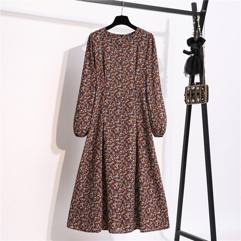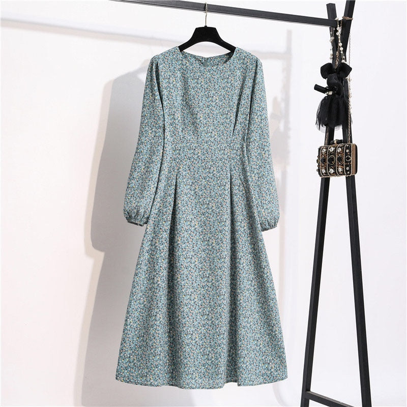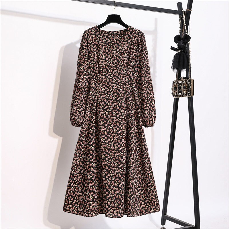 Autumn Winter Women Dress 2022 Vintage Lantern Sleeve Floral Print Chiffon Long Dress Casual A-line Elegant Party Vestidos Robe