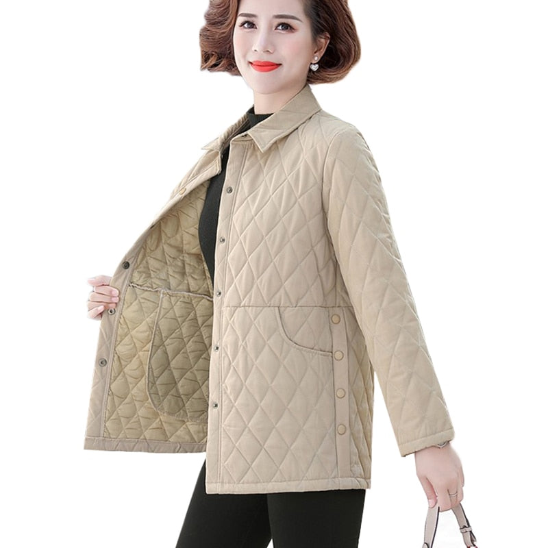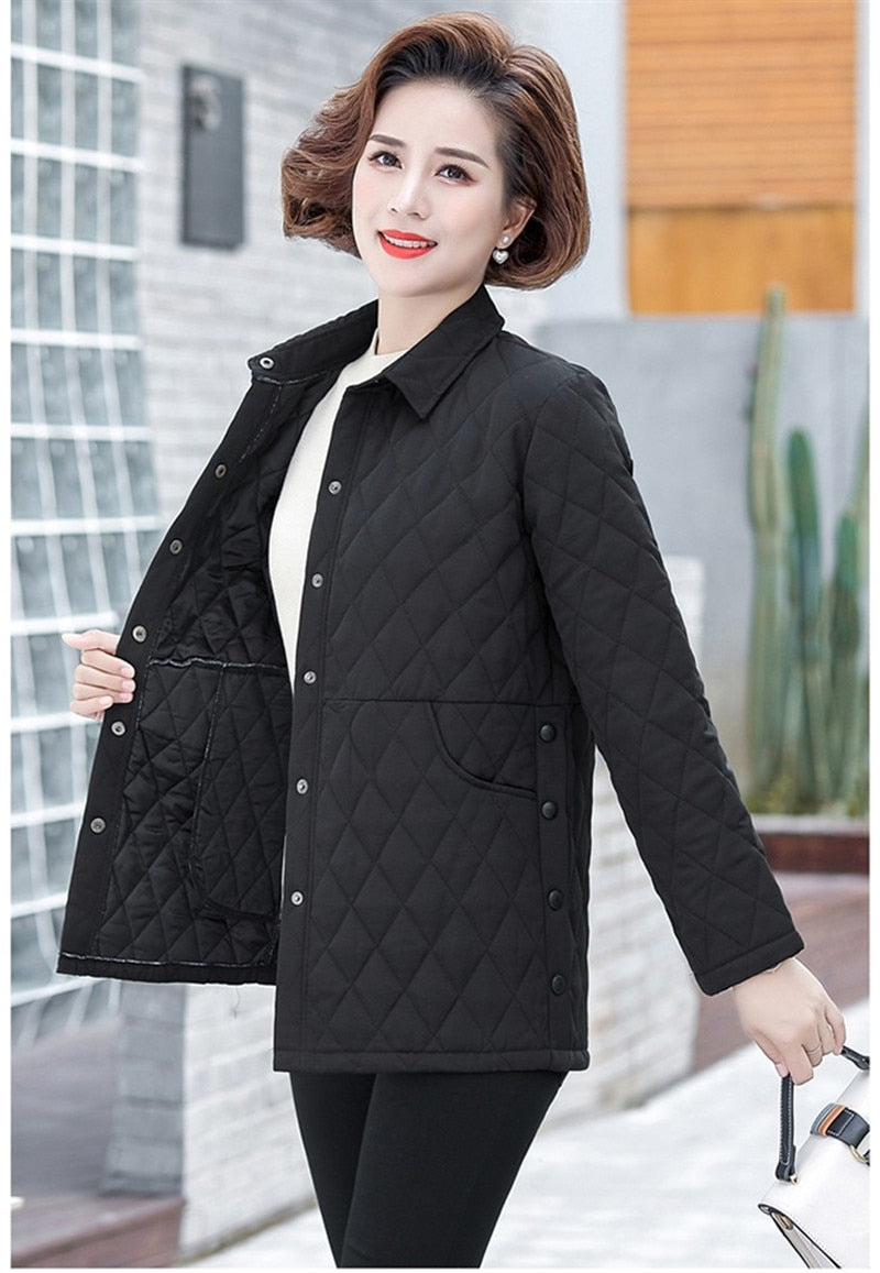 Autumn Women's Cotton Jacket New Solid Color Plus Size 5XL Thin Cotton Padded Shirt Jacket Middle-aged Elderly Mothers Clothing