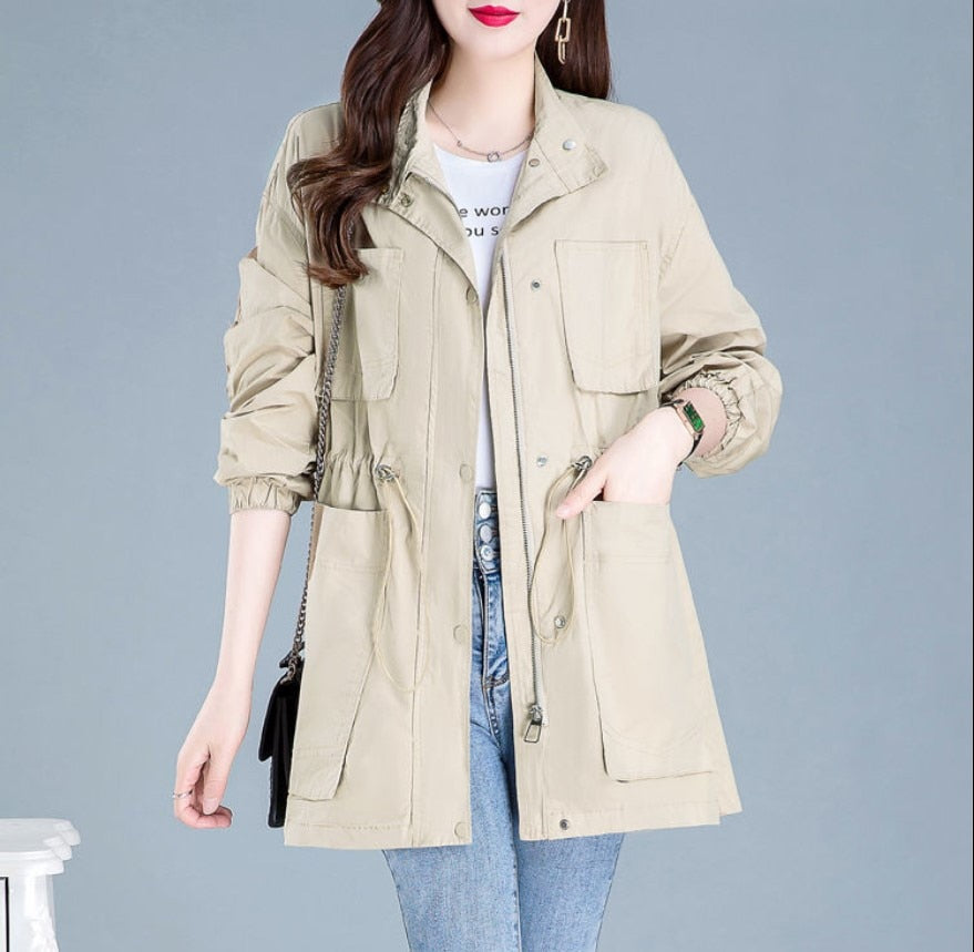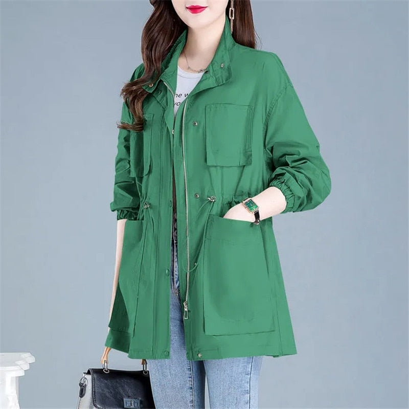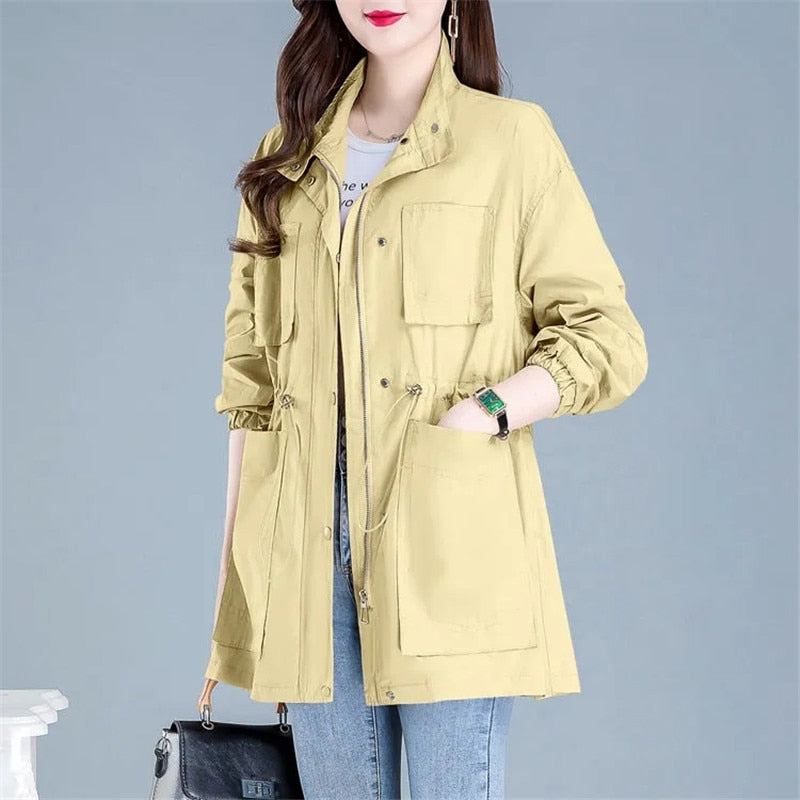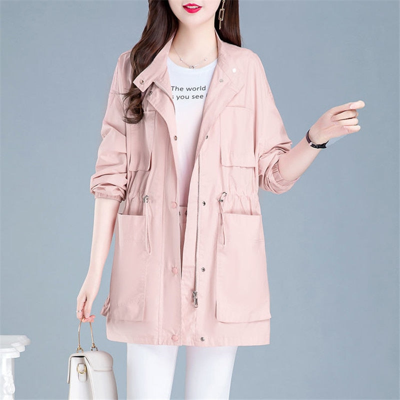 Autumn Women's Trench Coat 2021 New Solid Pocket Drawstring Mid Long Overcoat Loose Plus Size 4XL Female Windbreakers Basic Coat