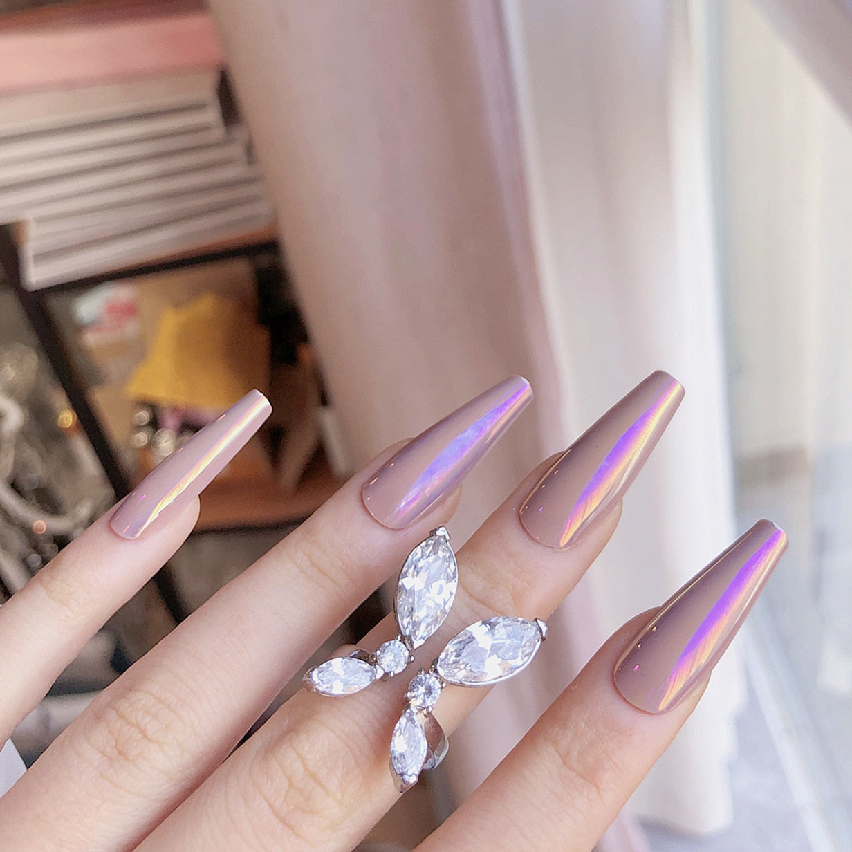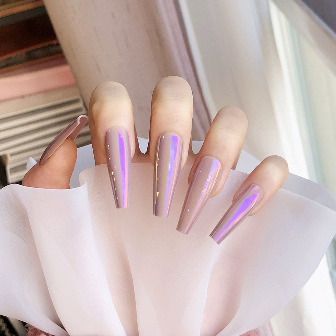 Ballerina Coffin False Nails Chrome Lavender Purple Press On Fingernails Fake Nails Extra Long Ladies Designed Tips for Finger-Nail Inspo