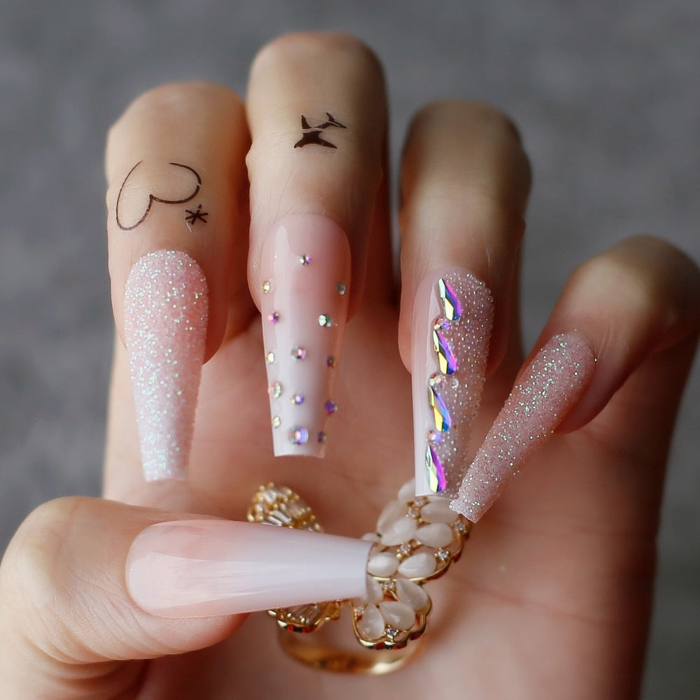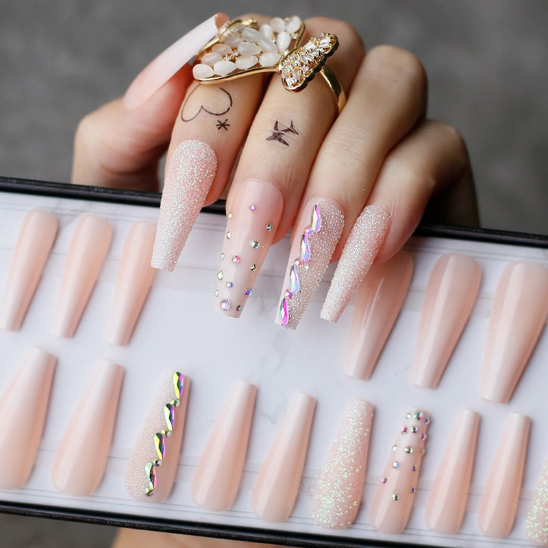 Beaeutiful Baby Boomer Ombre Long Coffin false nails Gift Luxury Crystal Galore Fake nails Box Press on nails Ballet-Nail Inspo