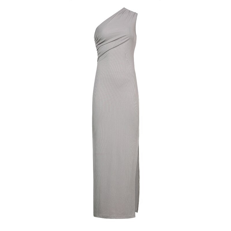 BIIKPIIK 2022 Spring Women's Clothes Sleeveless Long Dresses Soild Vintage Streetwear Asymmetrical Neck Side Slit Bodycon Dress