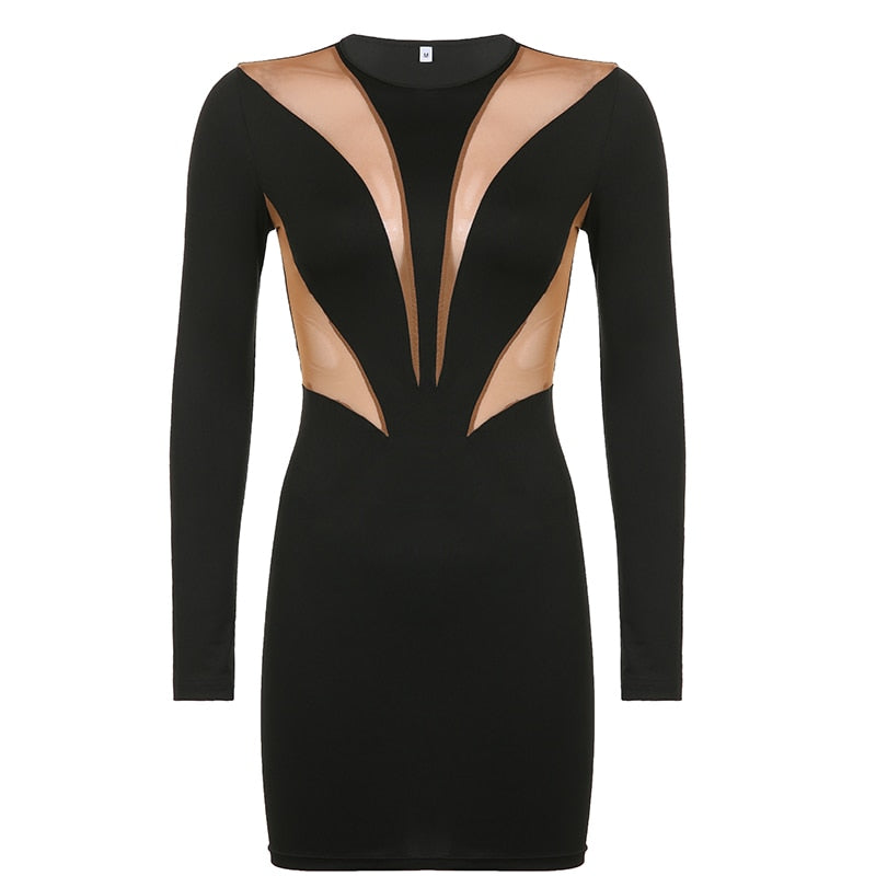 BIIKPIIK Casual Streetwear Long Sleeve Dresses For Women Elegant Patchwork Body-shaping Sheath Mini Dress O-neck Fashion Clothes
