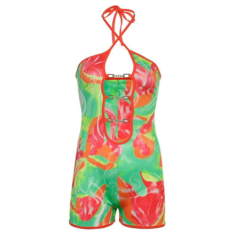 BIIKPIIK Elegant Women Playsuits Slim Metal Button Low V Neck Cleavage Sexy Shorts Romper Female Party Club Outfits Summer Beach