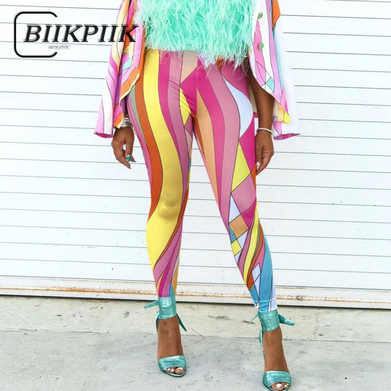 BIIKPIIK Fashion Color Blocking Women's Trousers Bodycon Harajuku Long Pencil Pants Casual Streetwear Autumn Female Pant